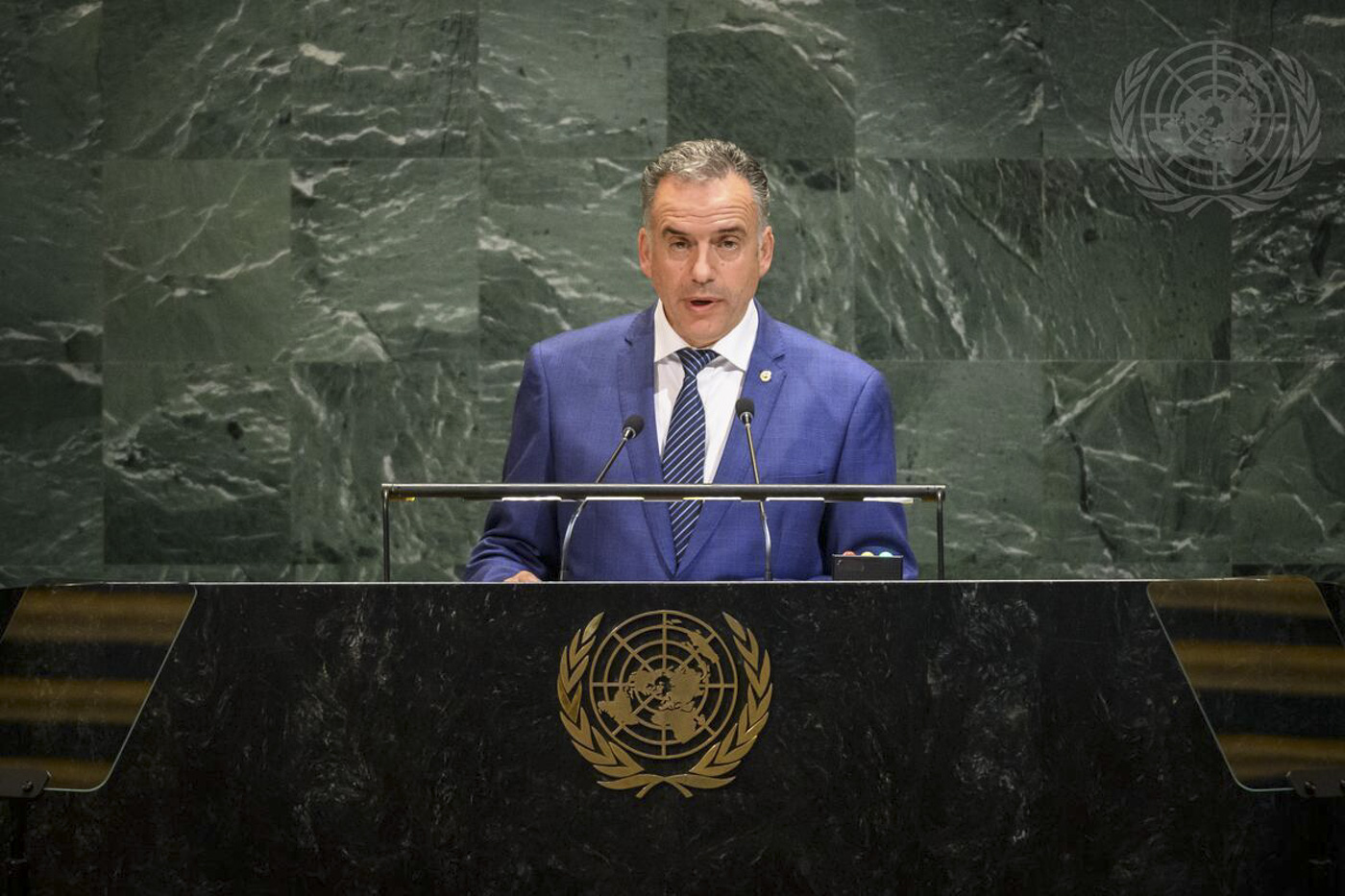 El presidente Yamandú Orsi, durante su discurso en la Asamblea de Naciones Unidas. Foto: Felipe Loey, UN Photo