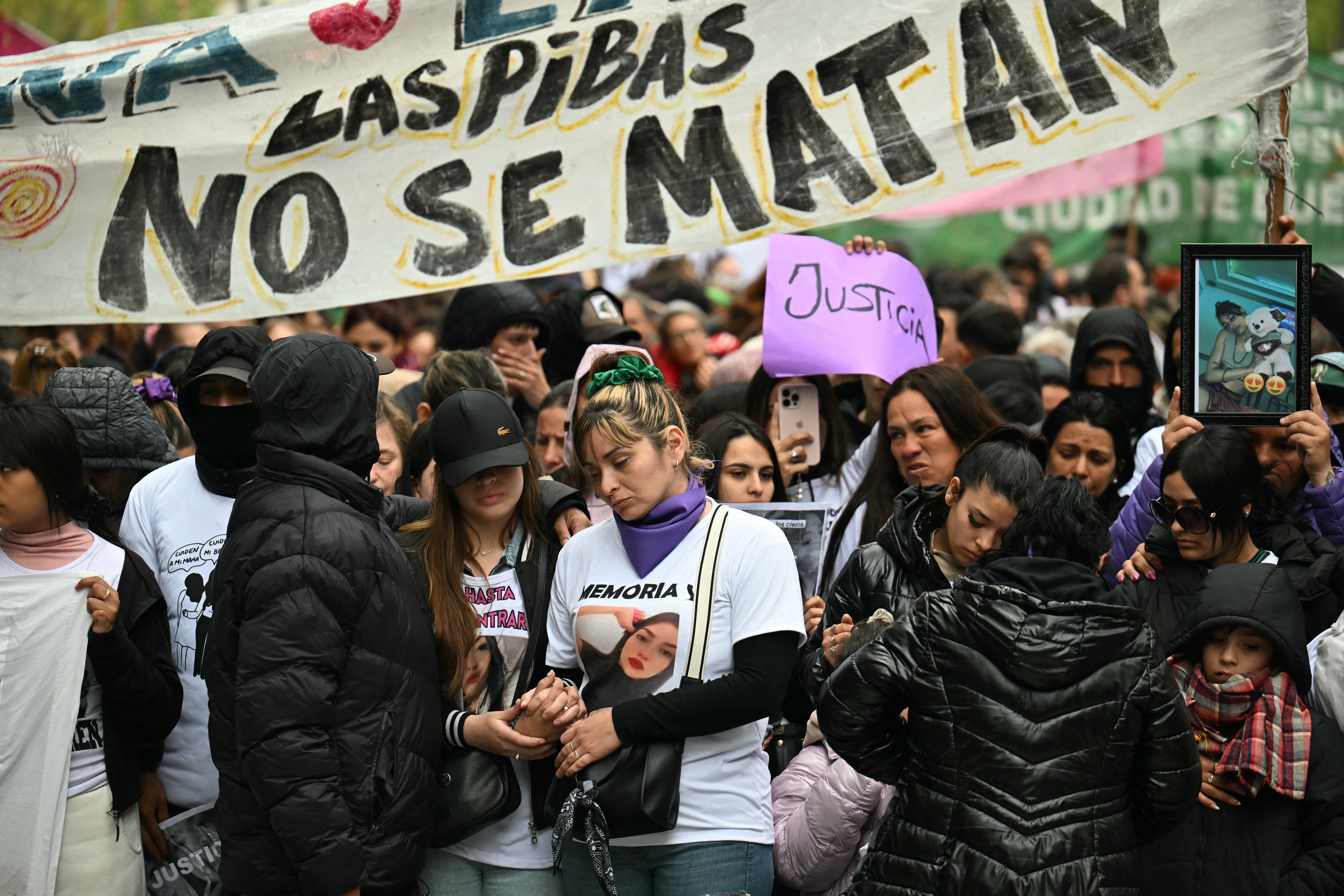 Familiares y amigos de las tres adolescentes asesinadas, durante la marcha bajo el lema: "No hay víctimas buenas ni malas, sólo feminicidios", el 27 de setiembre, en Buenos Aires.