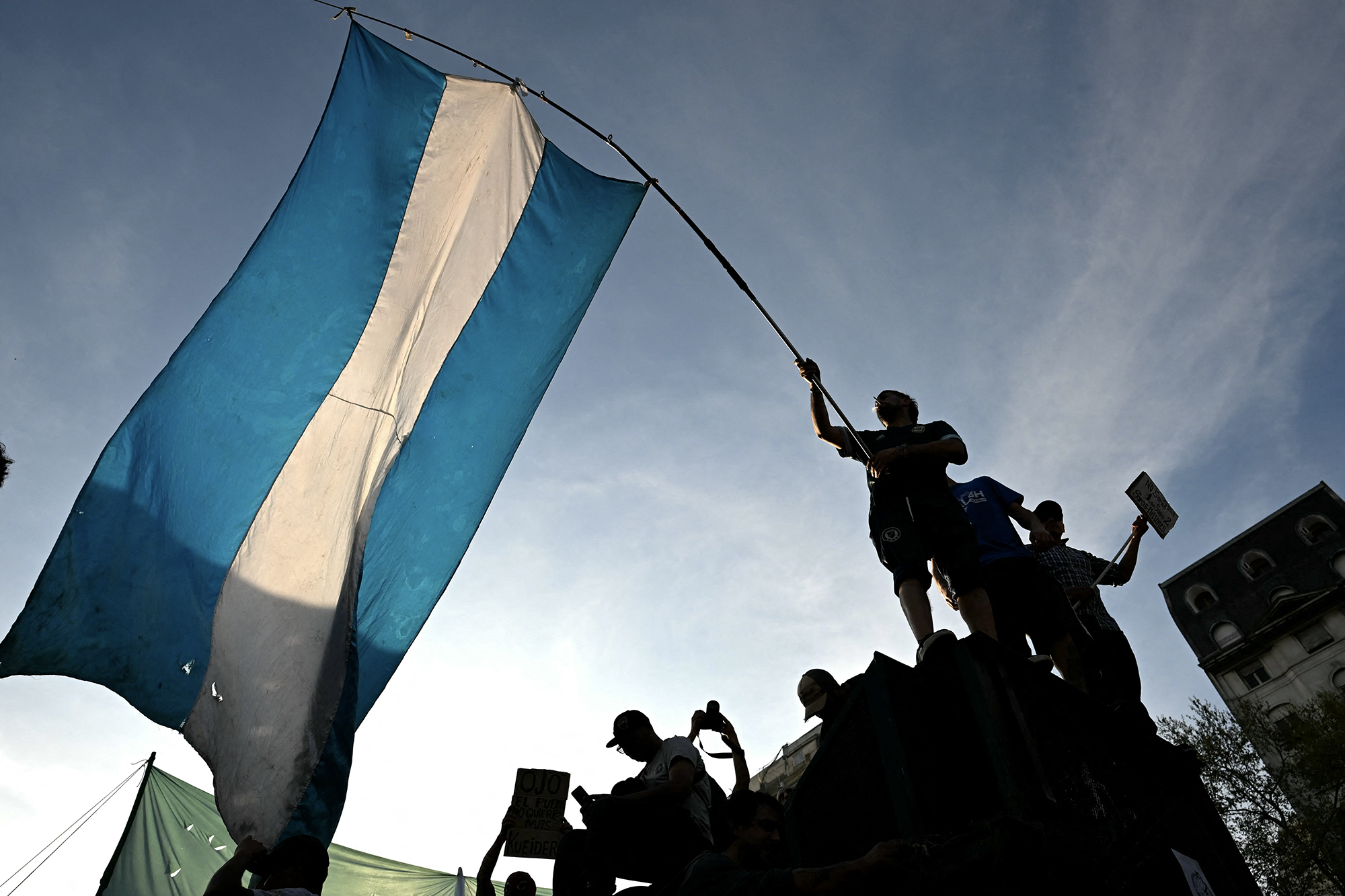 Festejos fuera del Congreso, después de que los diputados votaron contra los vetos de Javier Milei, el 17 de setiembre, en Buenos Aires.
