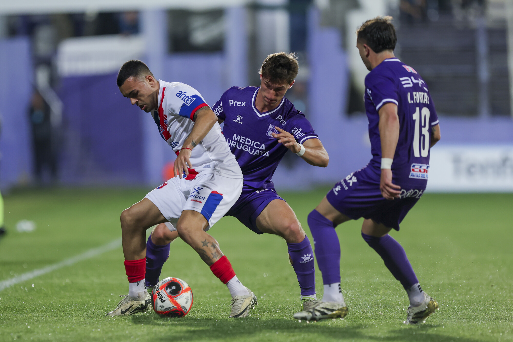 Rodrigo Muñiz, de Central Español, Lucas Agazzi y Nahuel Furtado, de Defensor Sporting.