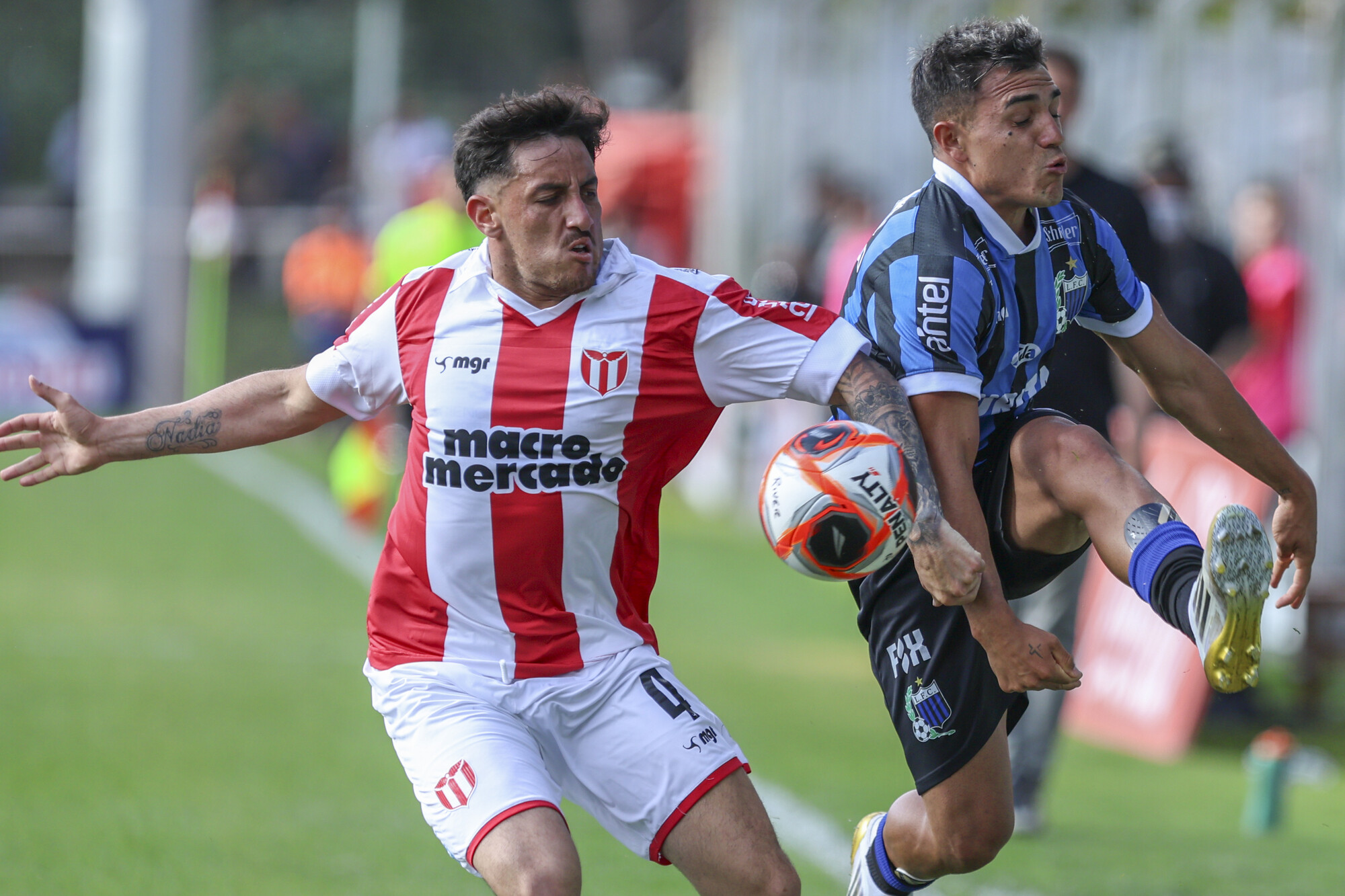 Lautaro Pertusatti, de River Plate, y Nicolás Vallejo, de Liverpool.