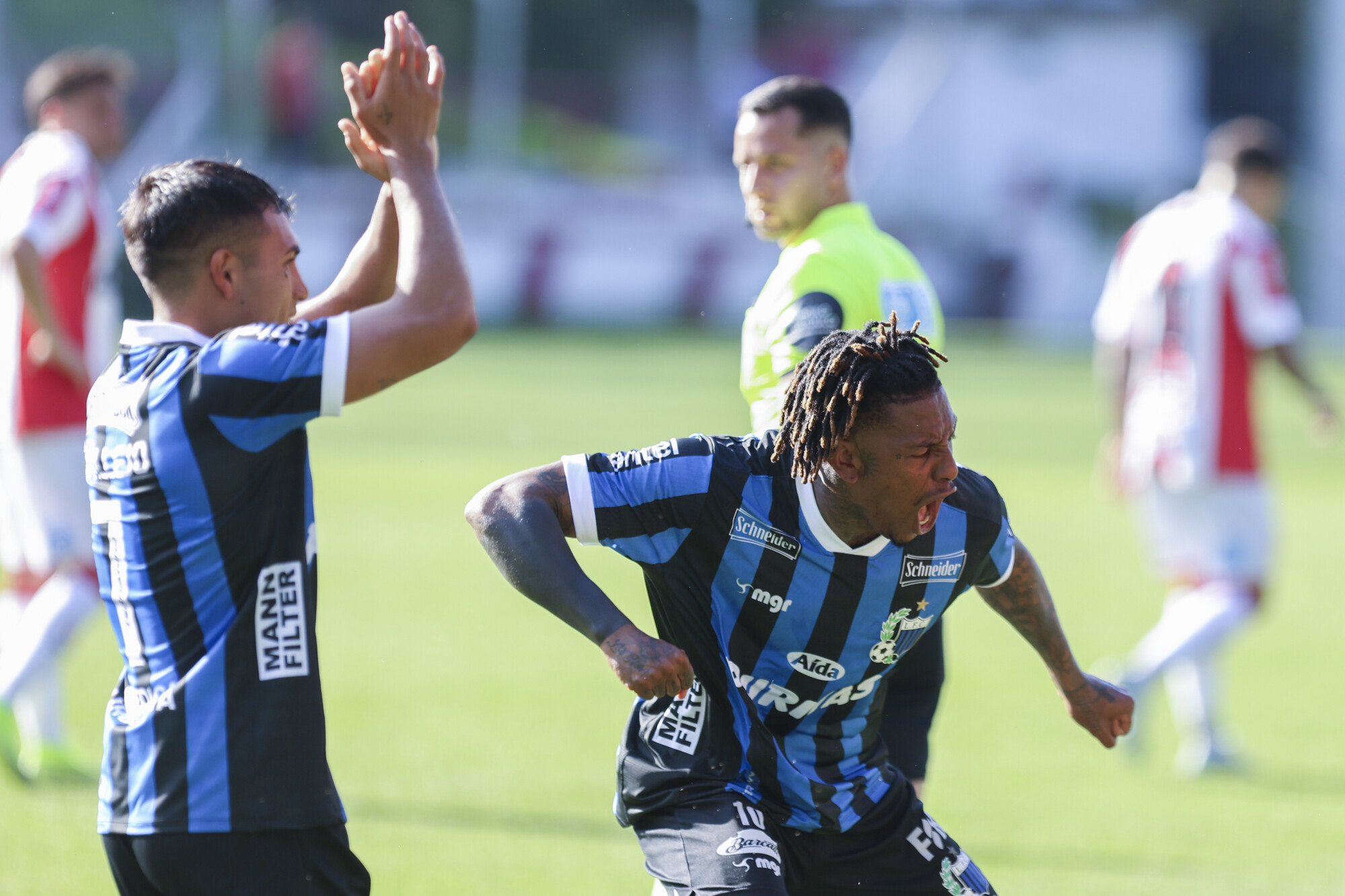 Abel Hernández (d), de Liverpool, tras convertir el primer gol de su equipo.
