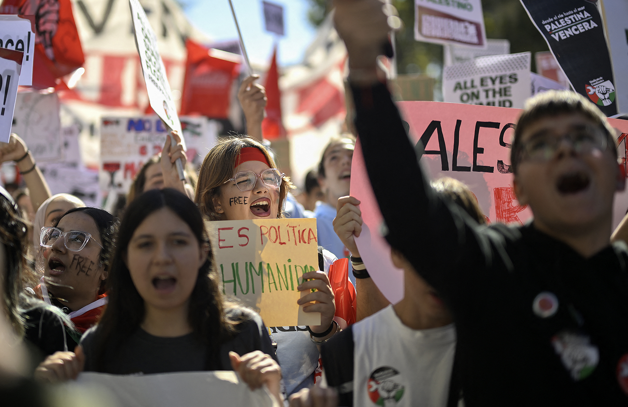 Protesta en apoyo de Palestina y la Global Sumud Flotilla, el 2 de octubre, en Madrid, España.