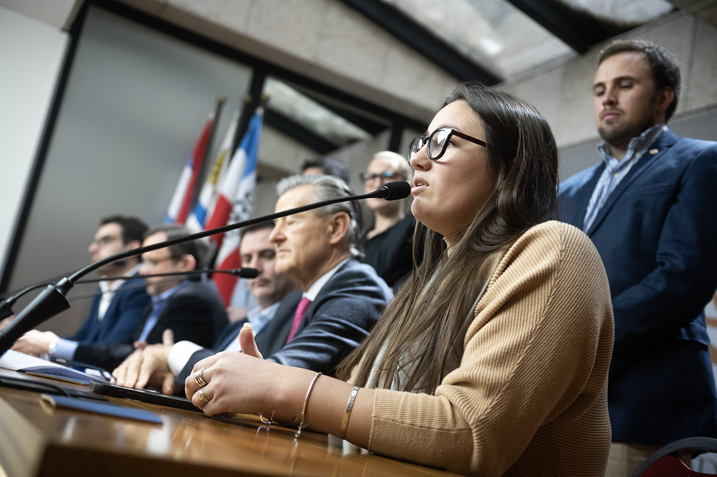 Paula de Armas durante la conferencia de prensa del Partido Colorado, en el edificio anexo del Palacio Legislativo.