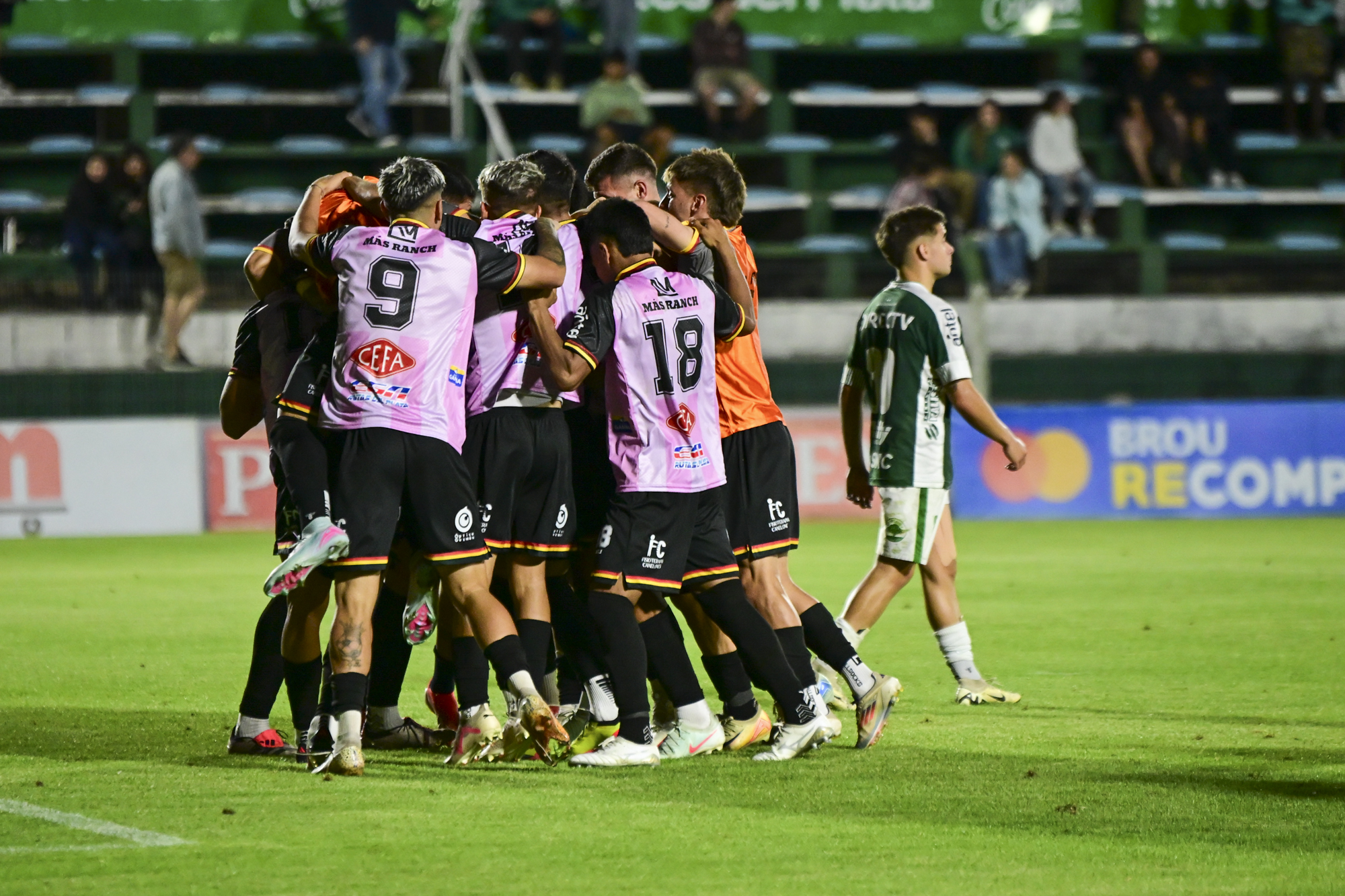Jugadores de Progreso festejan el triunfo frente a Plaza Colonia, el 10 de octubre, en Colonia