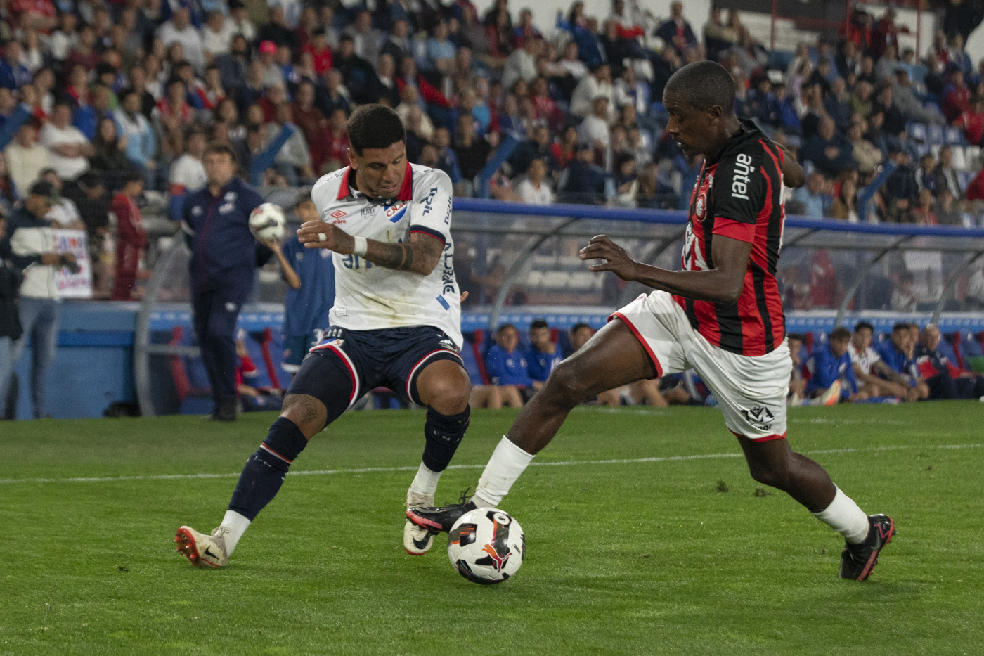 Antonio Galeano, de Nacional, y Denis Olivera, de Miramar Misiones, en el Gran Parque Central.