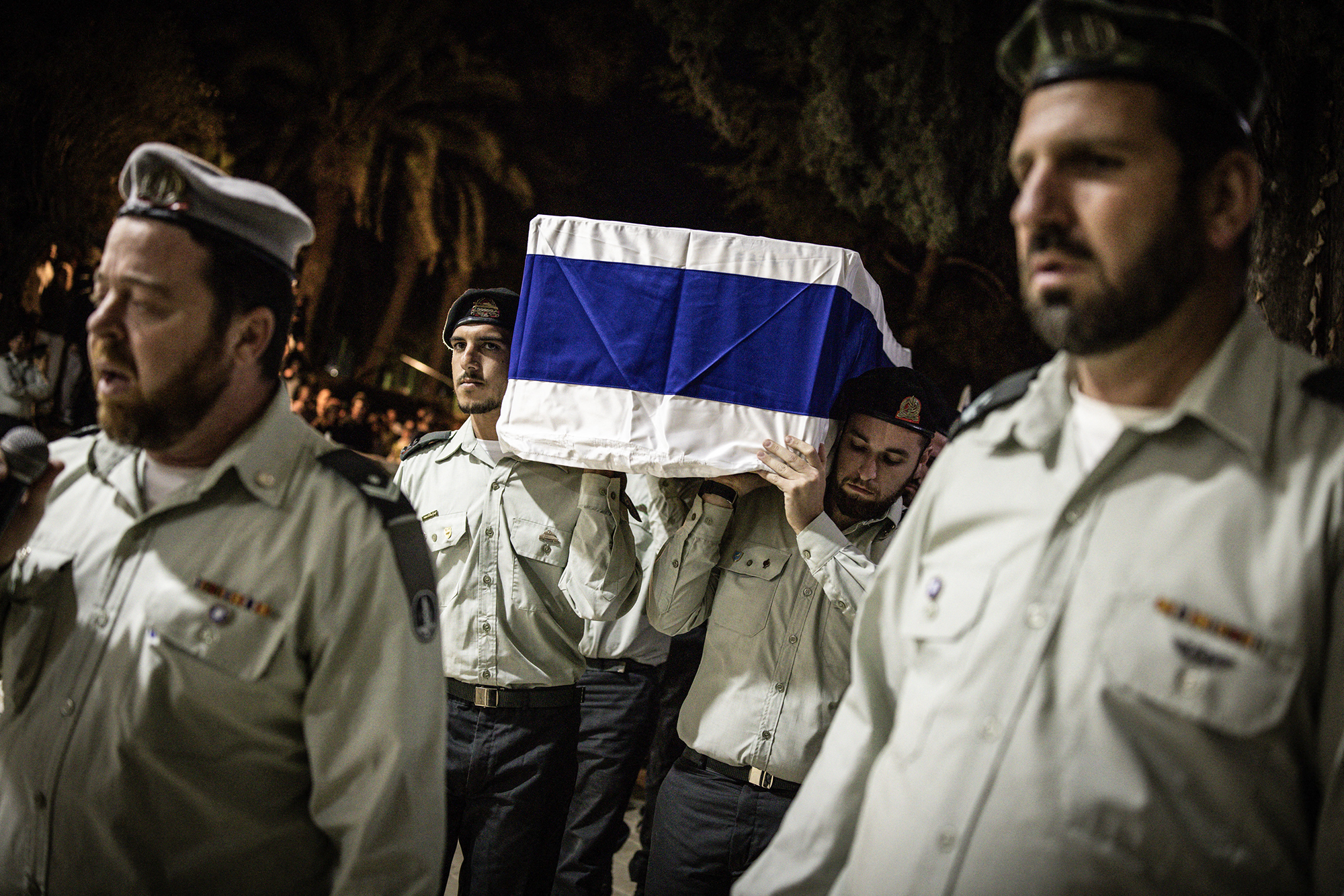 Soldados israelíes cargan el ataúd del rehén Daniel Peretz, tras el regreso de su cuerpo desde Gaza como parte del acuerdo de alto el fuego, el 15 de octubre, en el cementerio militar del Monte Herzl, en Jerusalén.