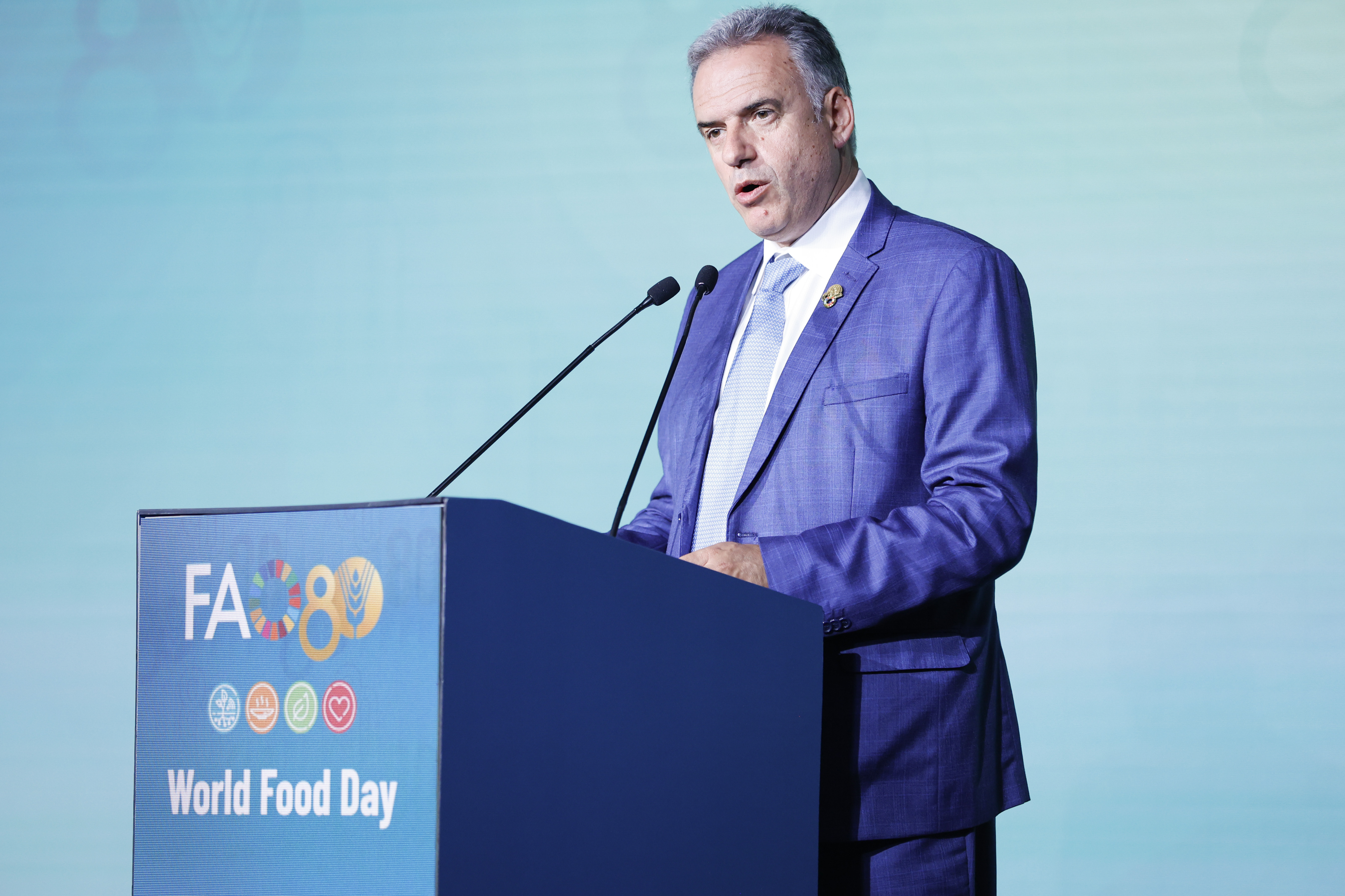 Yamandú Orsi, el 16 de octubre, durante la conmemoración de los 80 años de la FAO, en Roma, Italia.