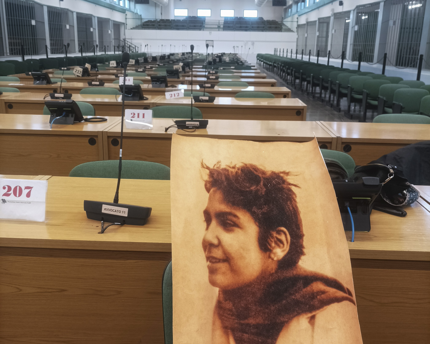 Retrato de Elena Quinteros en la Tercera Corte de Asís del Tribunal de Roma, donde Jorge Tróccoli fue condenado por su desaparición.