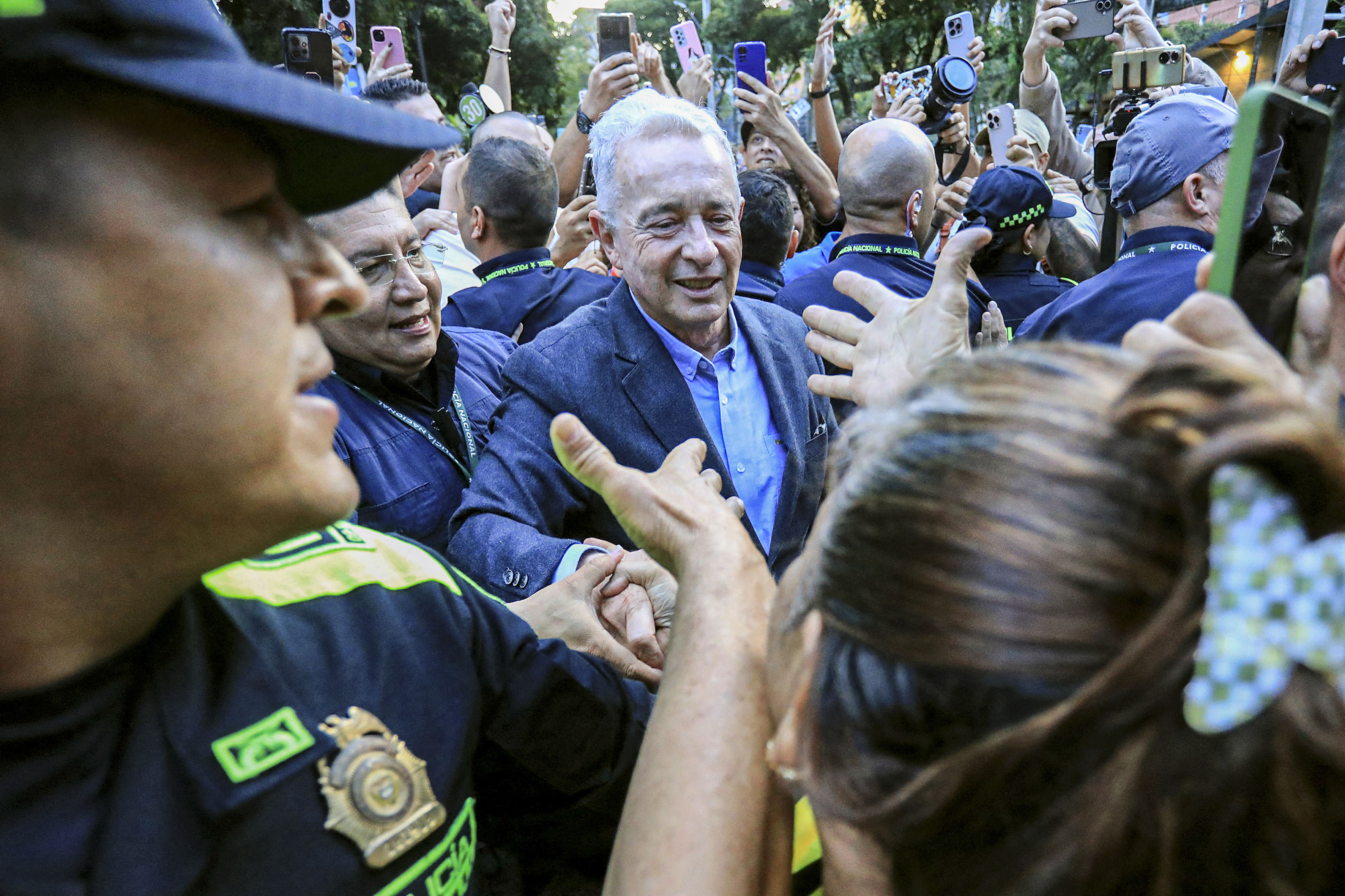 Álvaro Uribe Vélez, tras ser liberado de su arresto domiciliario en Sabaneta, el 20 de agosto, en Colombia.