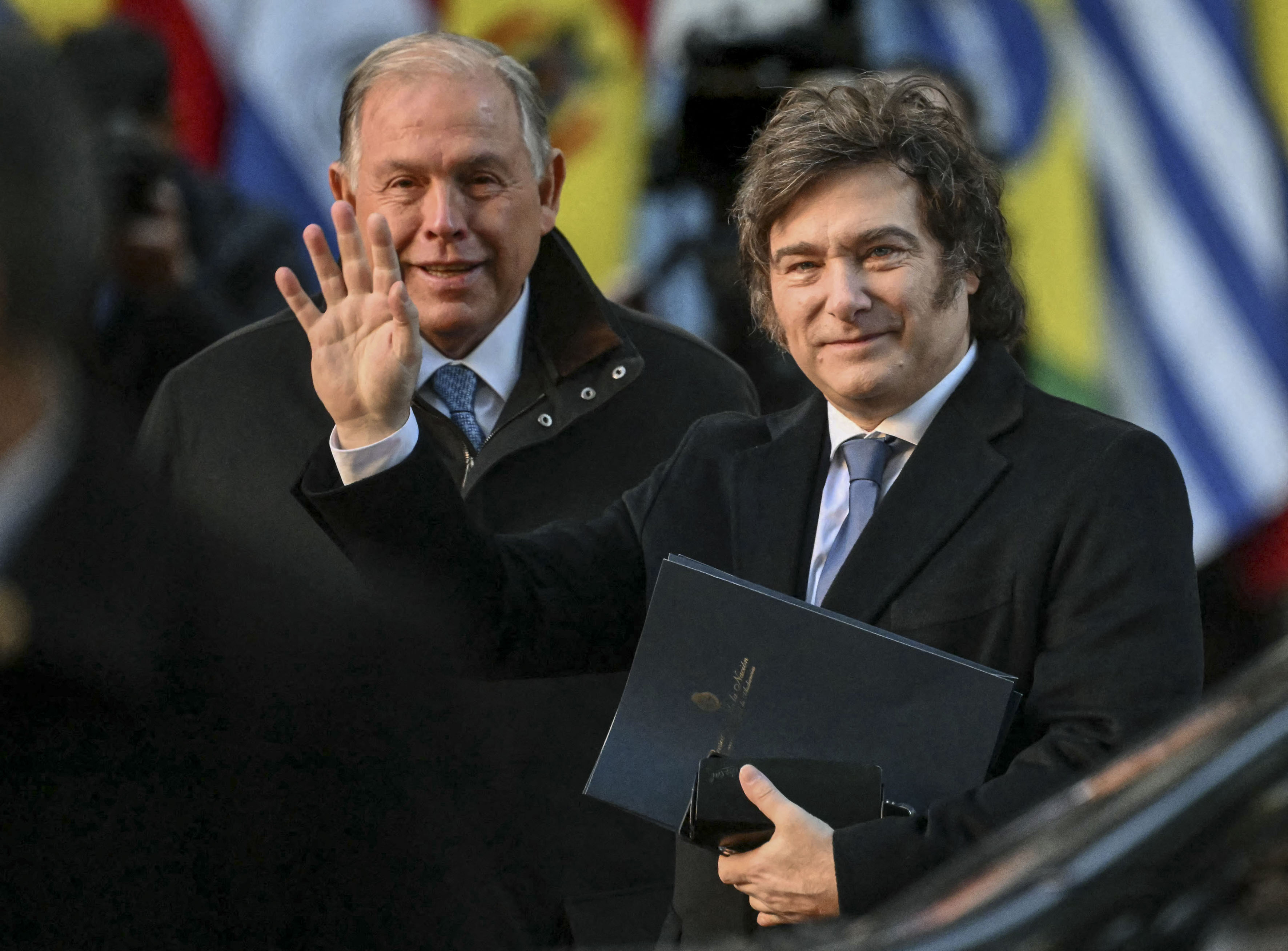 Javier Milei y Gerardo Werthein, a su llegada a la 66ª Cumbre de Líderes del Mercosur y Estados Asociados, el 3 de julio, en el Palacio San Martín de Buenos Aires.