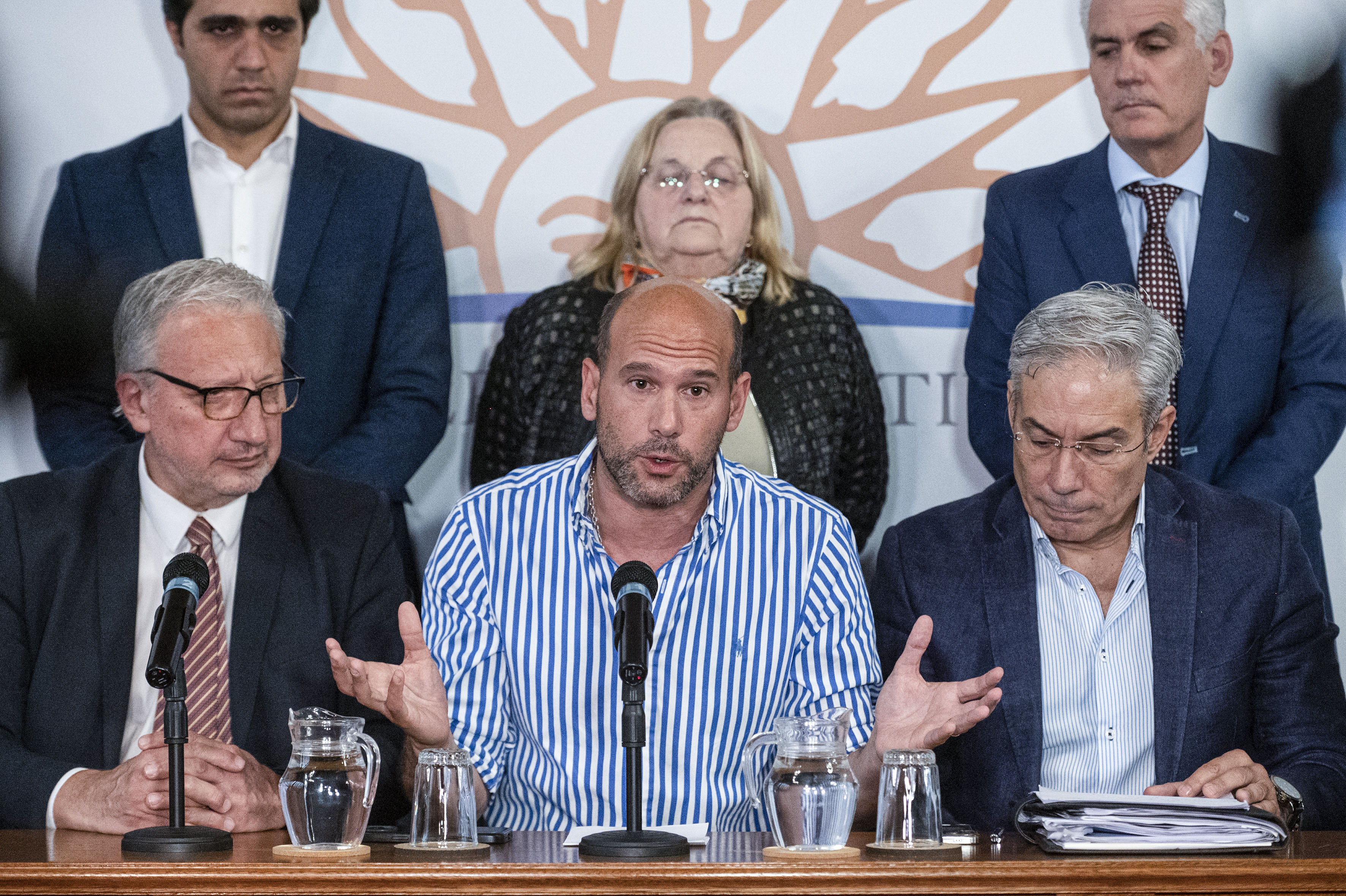 José Luis Satdjian, Graciela Bianchi, Rodrigo Goñi, Gerardo Sotelo, Martín Lema y Robert Silva, el 22 de octubre, en el Parlamento.