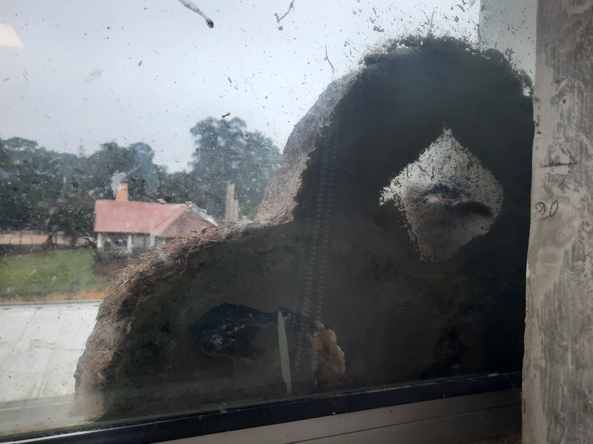 Nido de hornero sobre ventana.