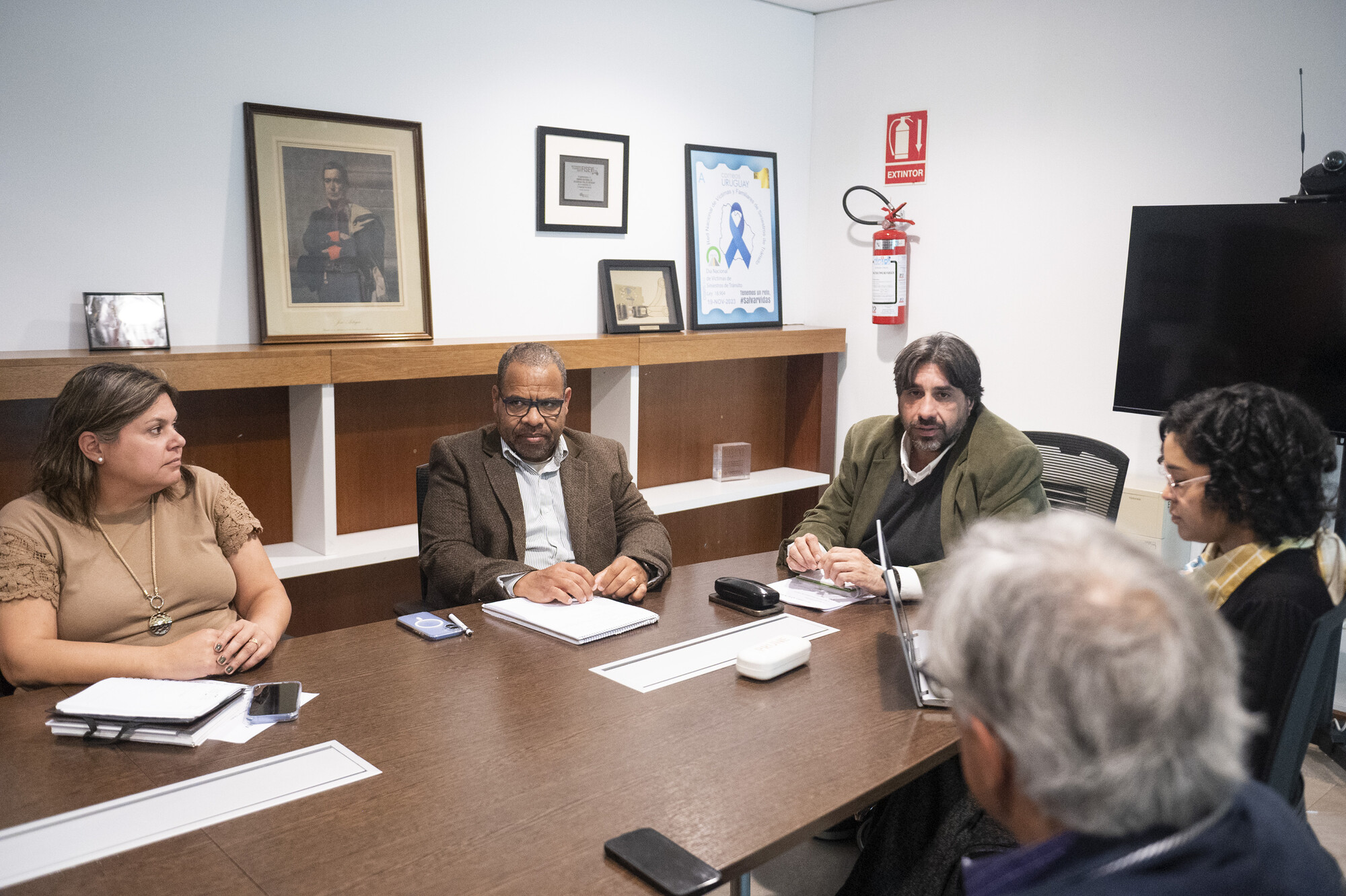 Natalia López, Aníbal Pintos, Marcelo Metediera, Fernanda Artagaveyta y César García, el 27 de octubre, en Torre Ejecutiva.