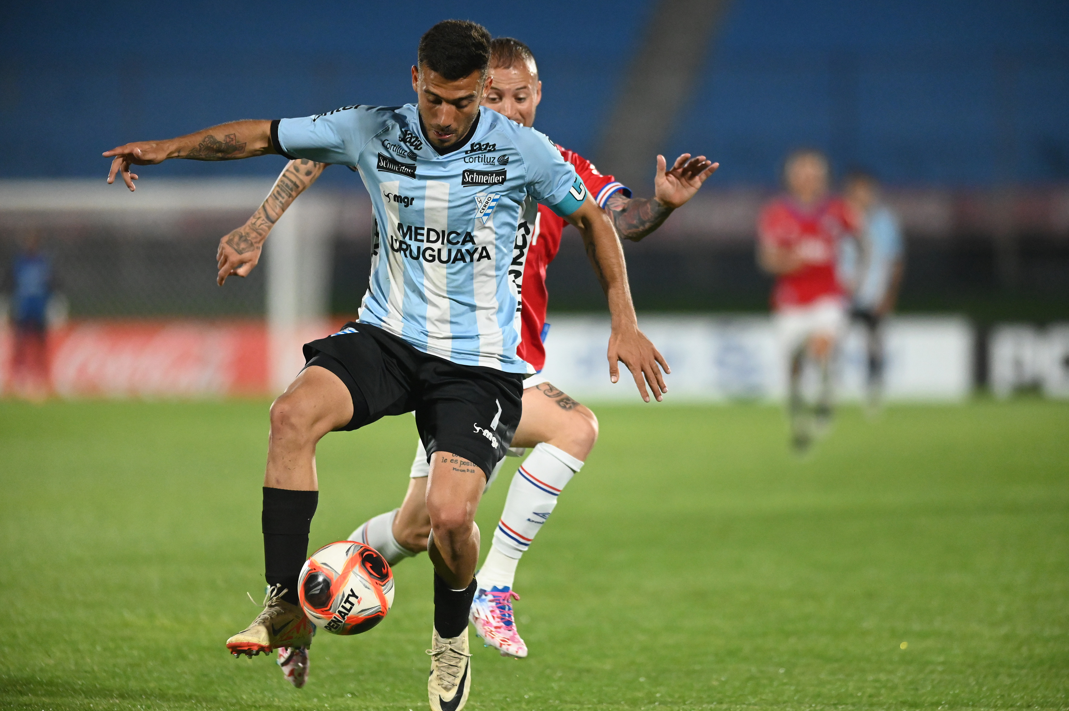 Alejo Macelli, de Cerro, y Nicolás López, de Nacional, el 1º de noviembre en el estadio Centenario.