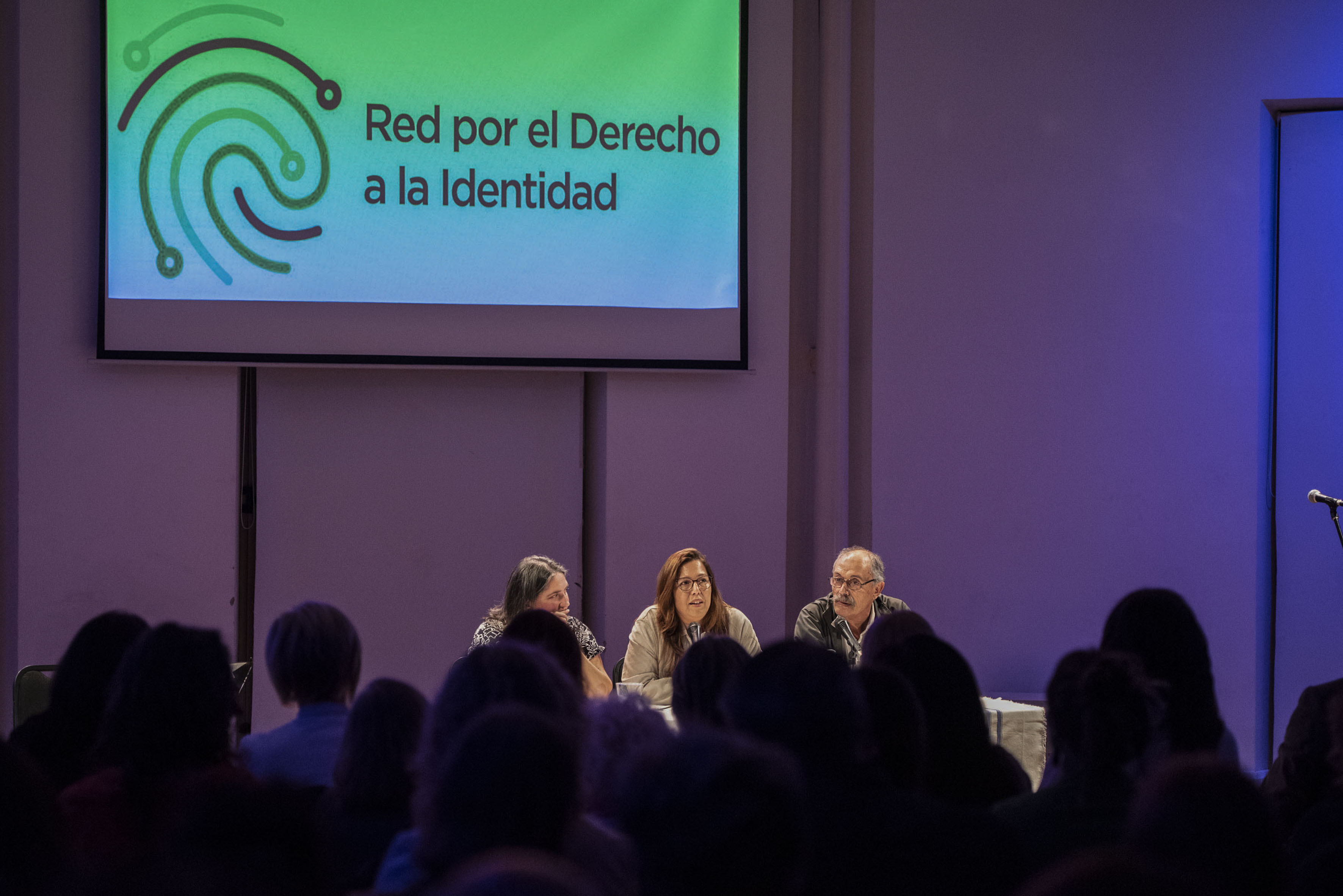 Macarena Gelman, Claudia Poblete y Carlos Solsona, el 3 de noviembre, en el teatro Solís.