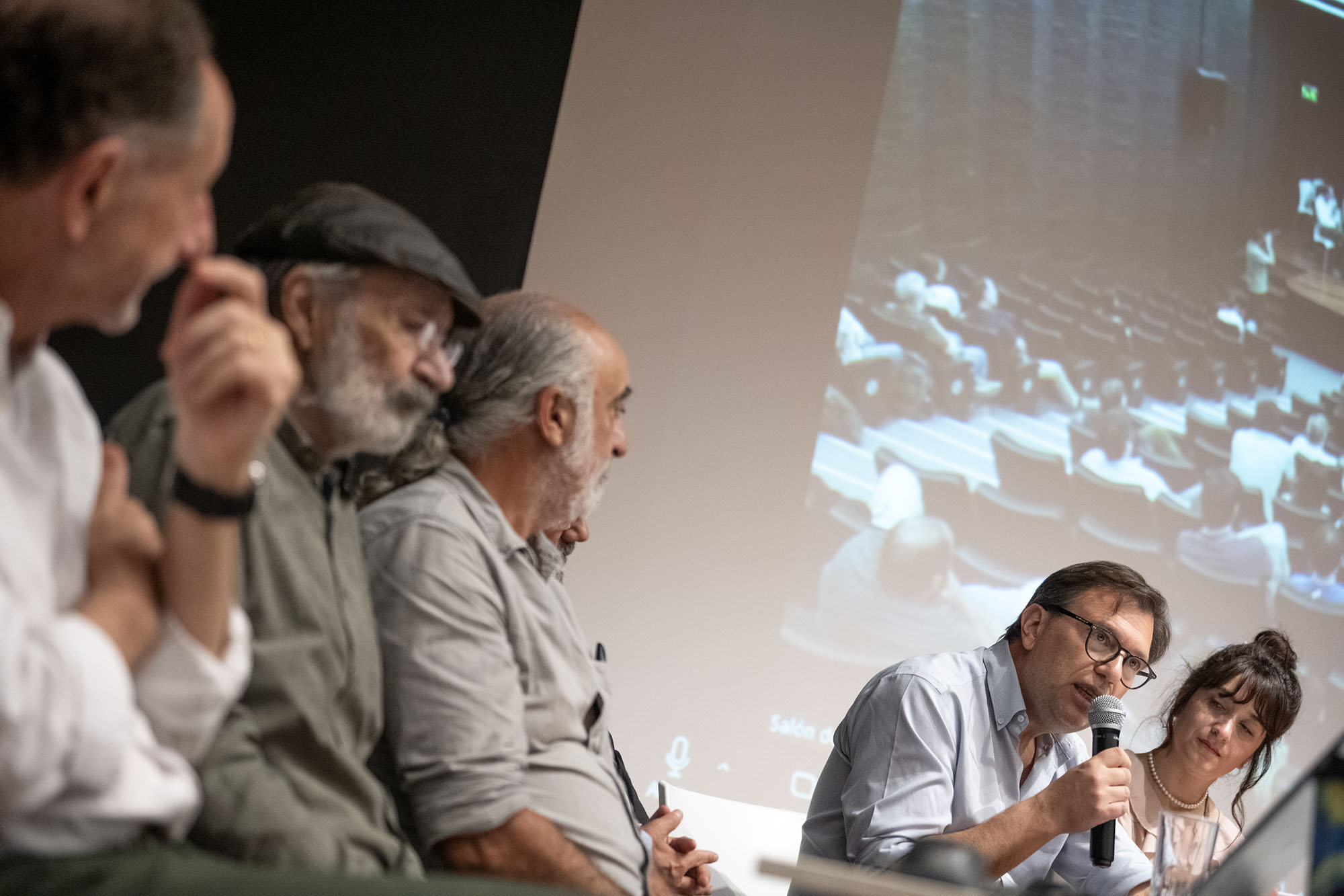 Omar Defeo, Daniel Panario, Marcel Achkar, Rodrigo Lledó, Juan Ceretta y Constanza Soler, el 17 de octubre en la Facultad de Ciencias.