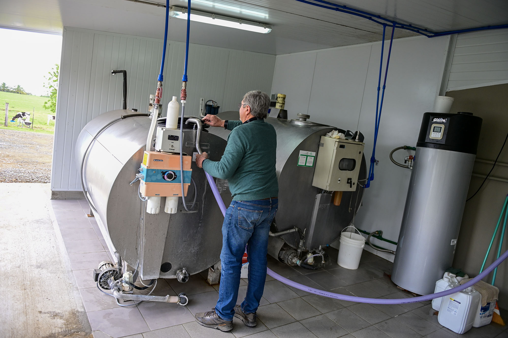 Enrique Celio, junto a los tanques de refrigeración de leche, en el Tambo de la Quesería La Cumbre.