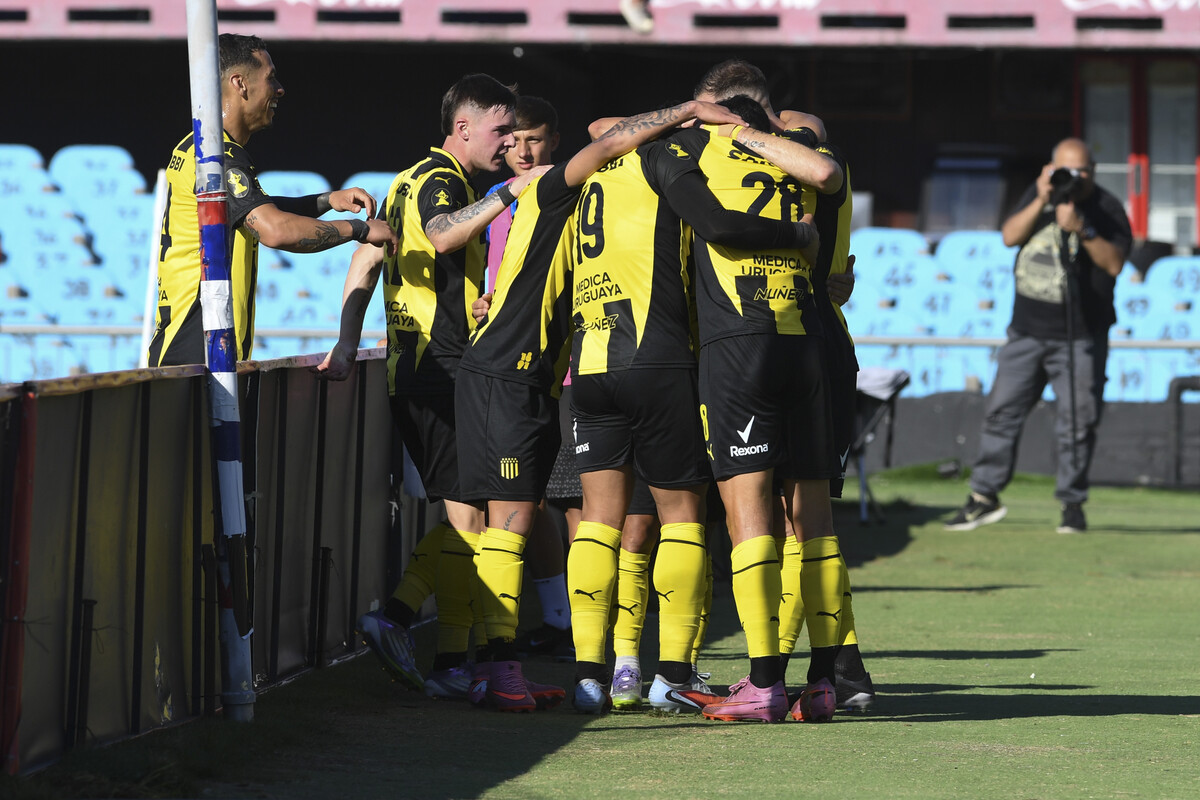 Jugadores de Peñarol festejan tras convertirle el primer gol a Torque, el 9 de noviembre , en el estadio Centenario.