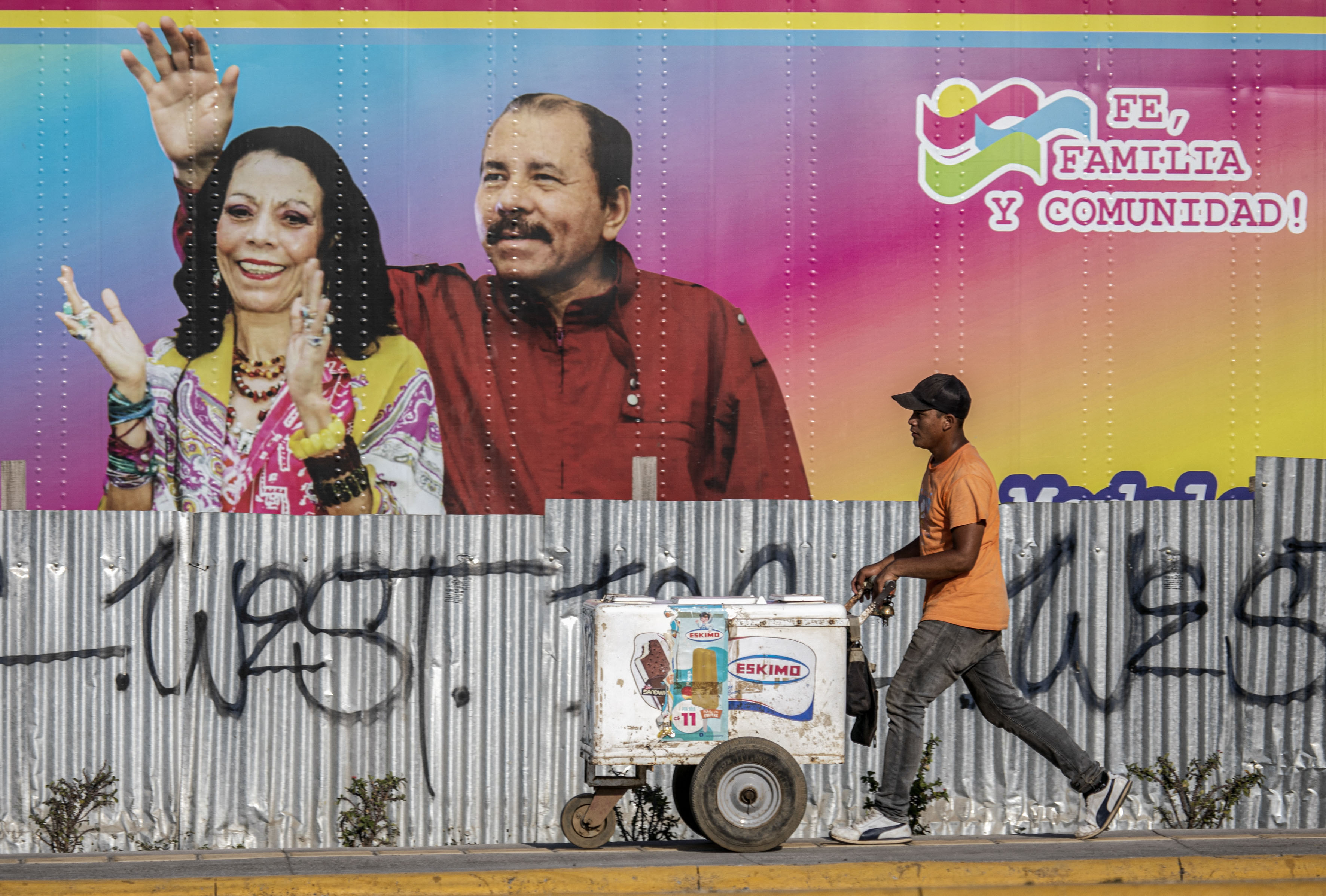 Fotografía del copresidente de Nicaragua, Daniel Ortega y su esposa, la copresidenta Rosario Murillo, en Managua.