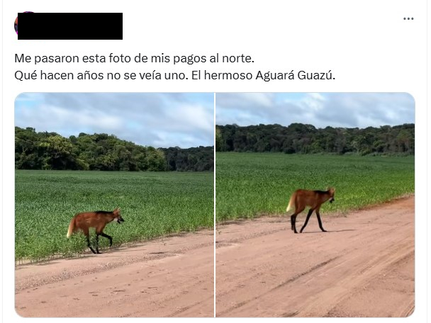 Aguará supuestamente visto en Artigas. Foto tomada de redes sociales.