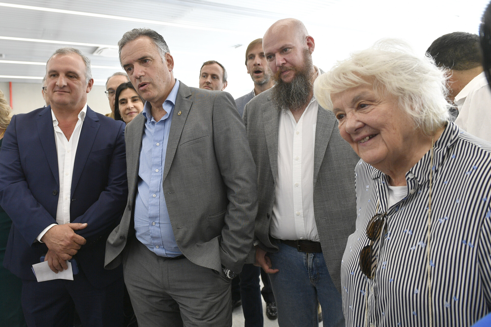 El intendente de Lavalleja, Daniel Ximénez; el presidente de la República, Yamandú Orsi; el director de Utec Este, Ezequiel Alemán, y Lucía Topolansky, el 17 de noviembre, durante la inauguración de la regional este de la UTEC.