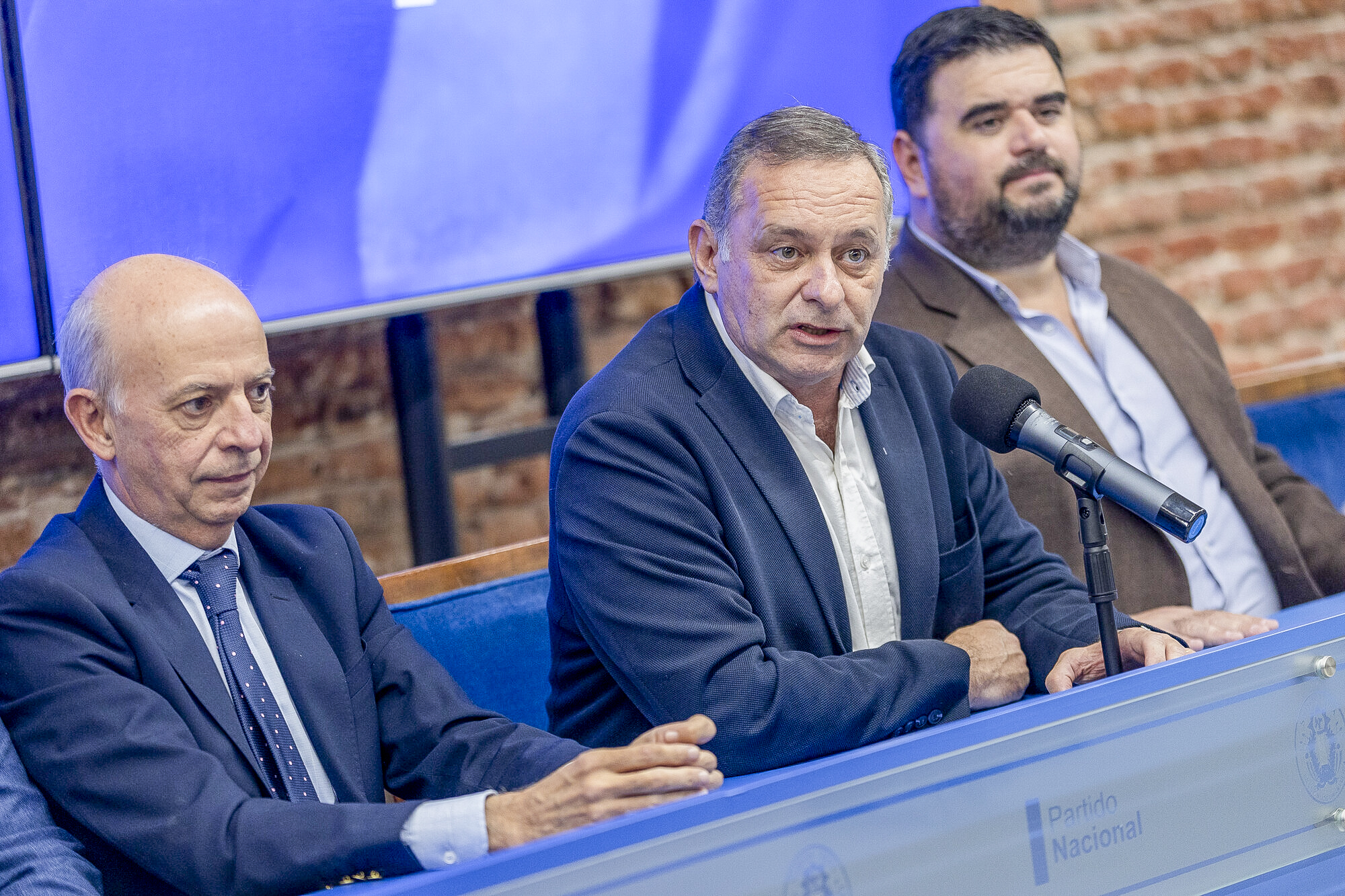 Javier García, Álvaro Delgado y Nicolás Olivera, el 19 de noviembre, durante la conferencia de prensa en la Casa del Partido Nacional.