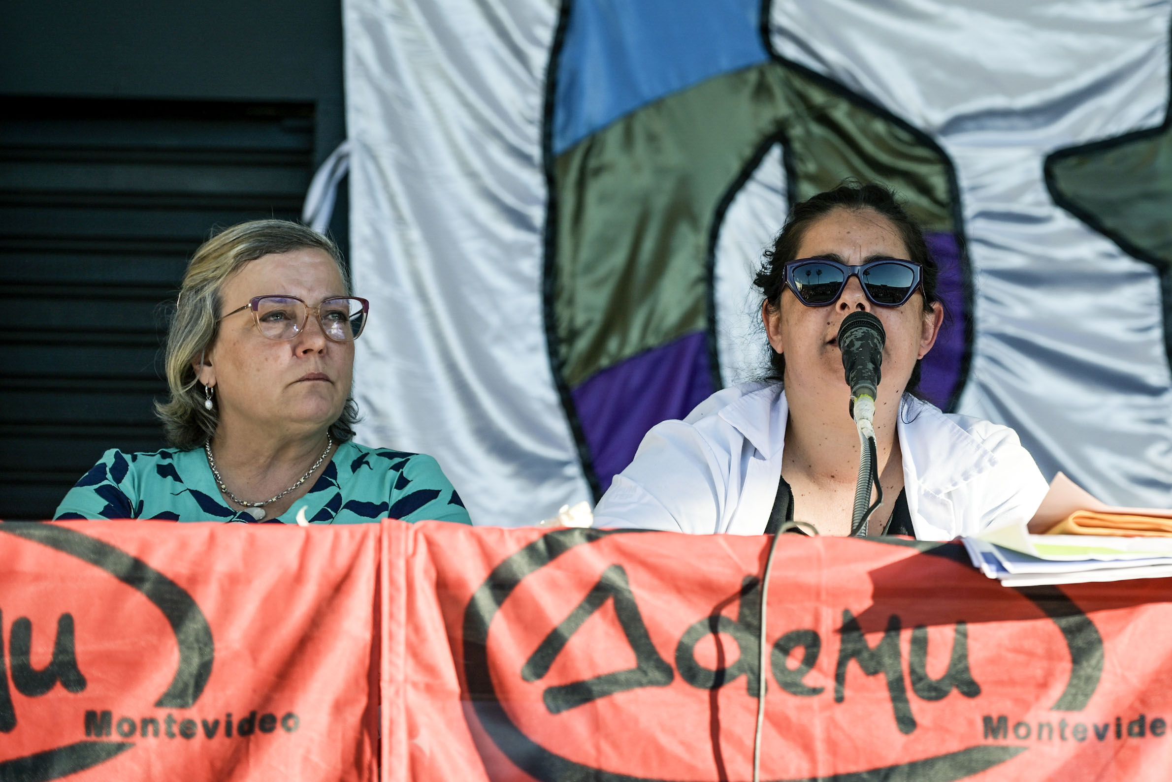 Alejandra Ostria y Paola López durante una asamblea de Ademu, el 10 de noviembre.