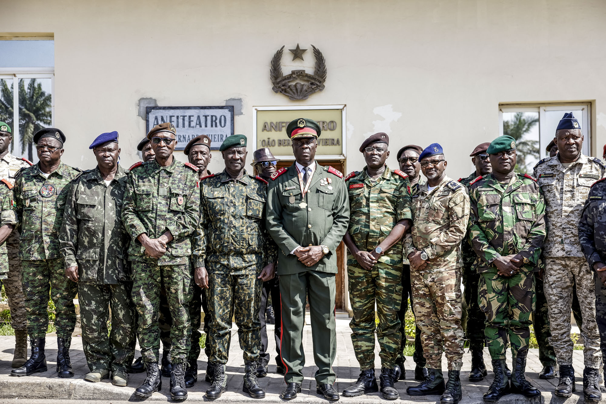 El general del Ejército de Guinea Bissau, Horta N'Tam (C), posa con otros líderes militares tras su juramento como líder de la transición y del Alto Mando en Bissau, el 27 de noviembre.