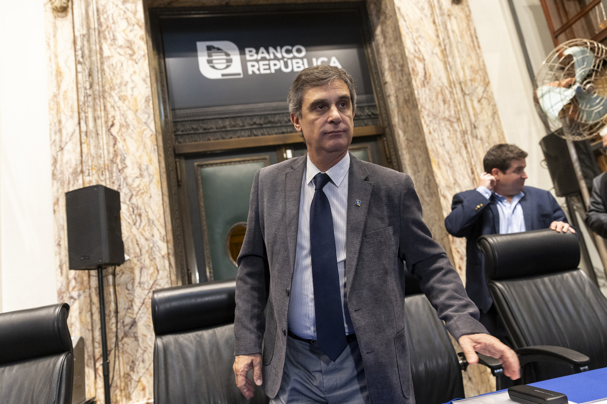 Álvaro García, presidente del BROU, el 28 de noviembre, en la conferencia de prensa.