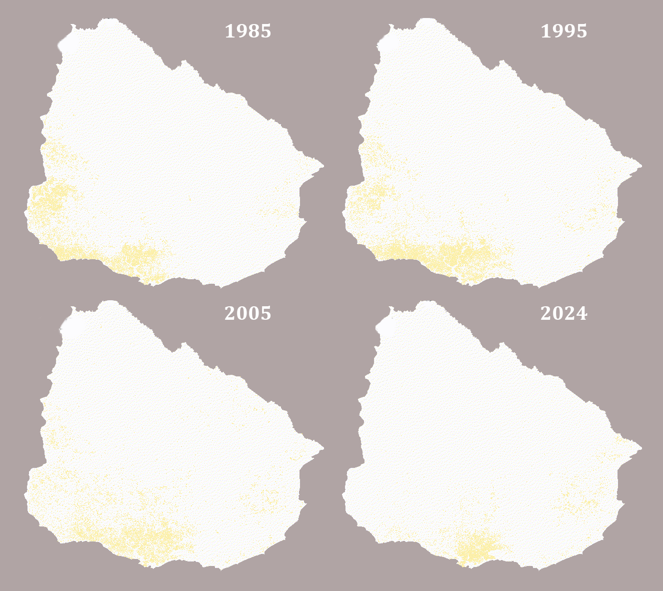 Cobertura de pasturas 1985-2024. En base a MapBiomas Uruguay.