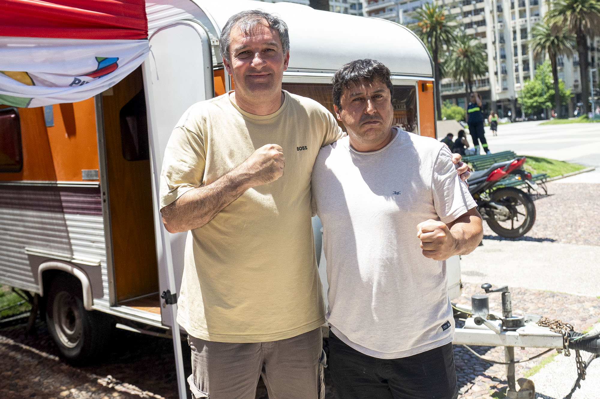 Mauricio Fernández y Aníbal Apollonia, trabajadores despedidos de Claldy que realizarán la huelga de hambre en la plaza Independencia.