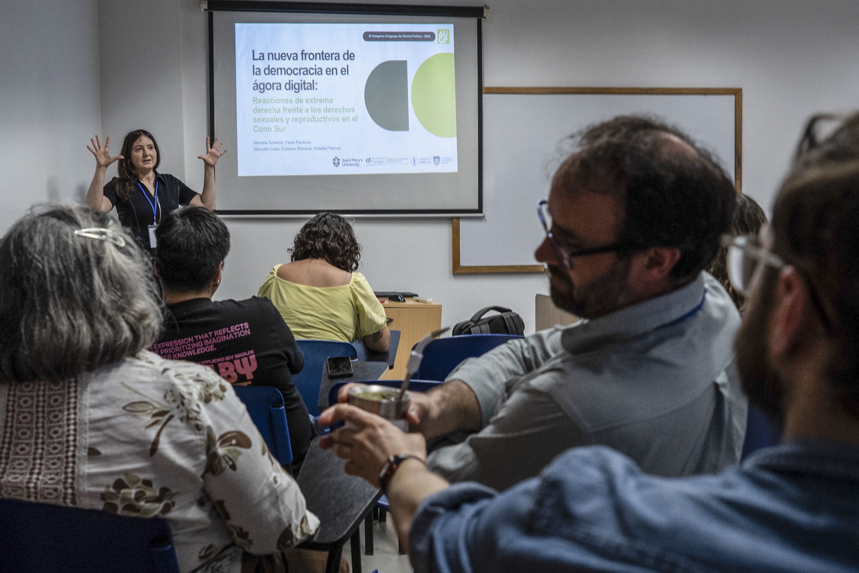 Marcela Schenck, el 3 de diciembre, en la Facultad de Ciencias Sociales.