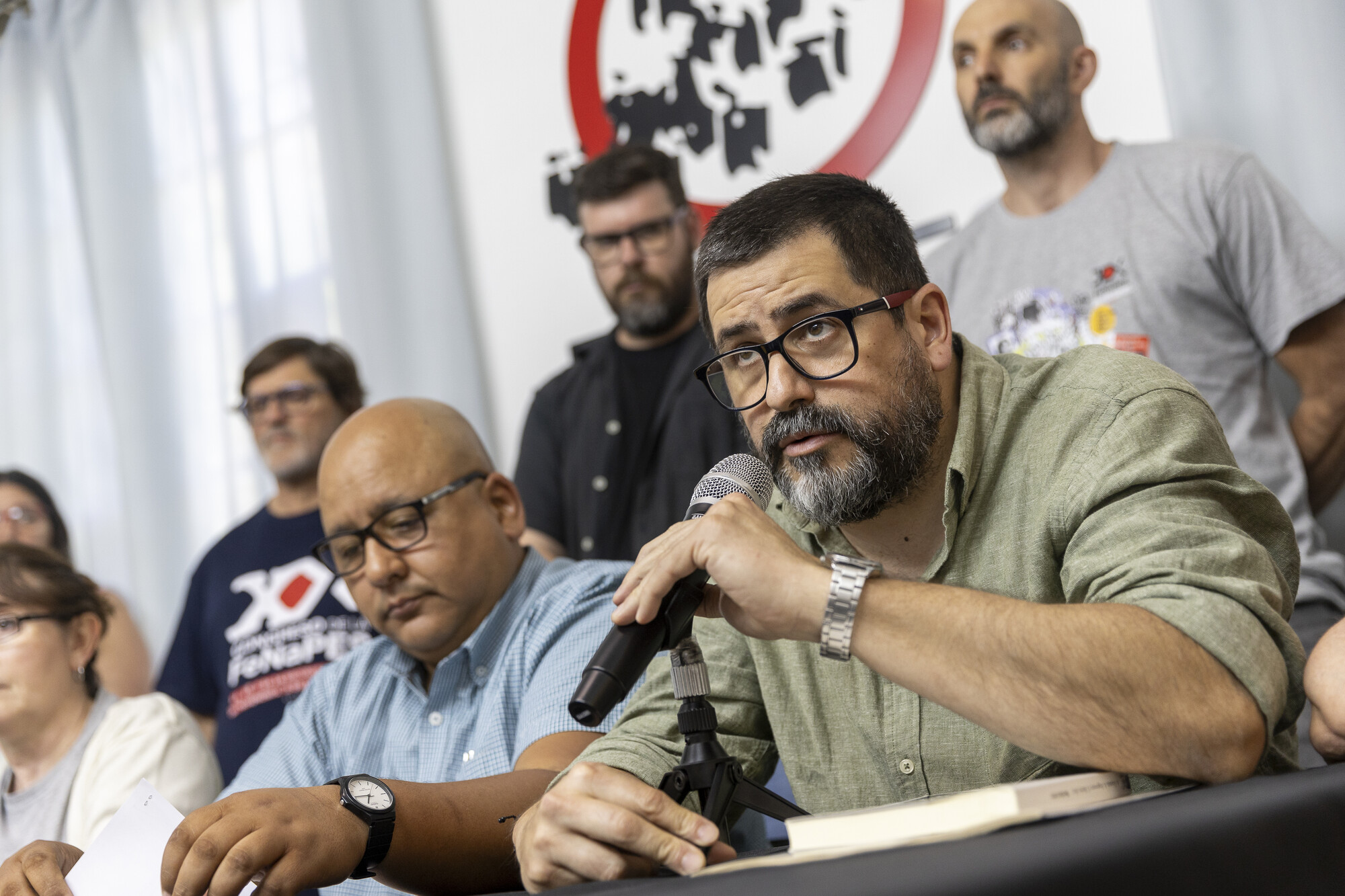 Emiliano Mandacen en la conferencia de prensa por la denuncia archivada a Fenapes, el 12 de diciembre.