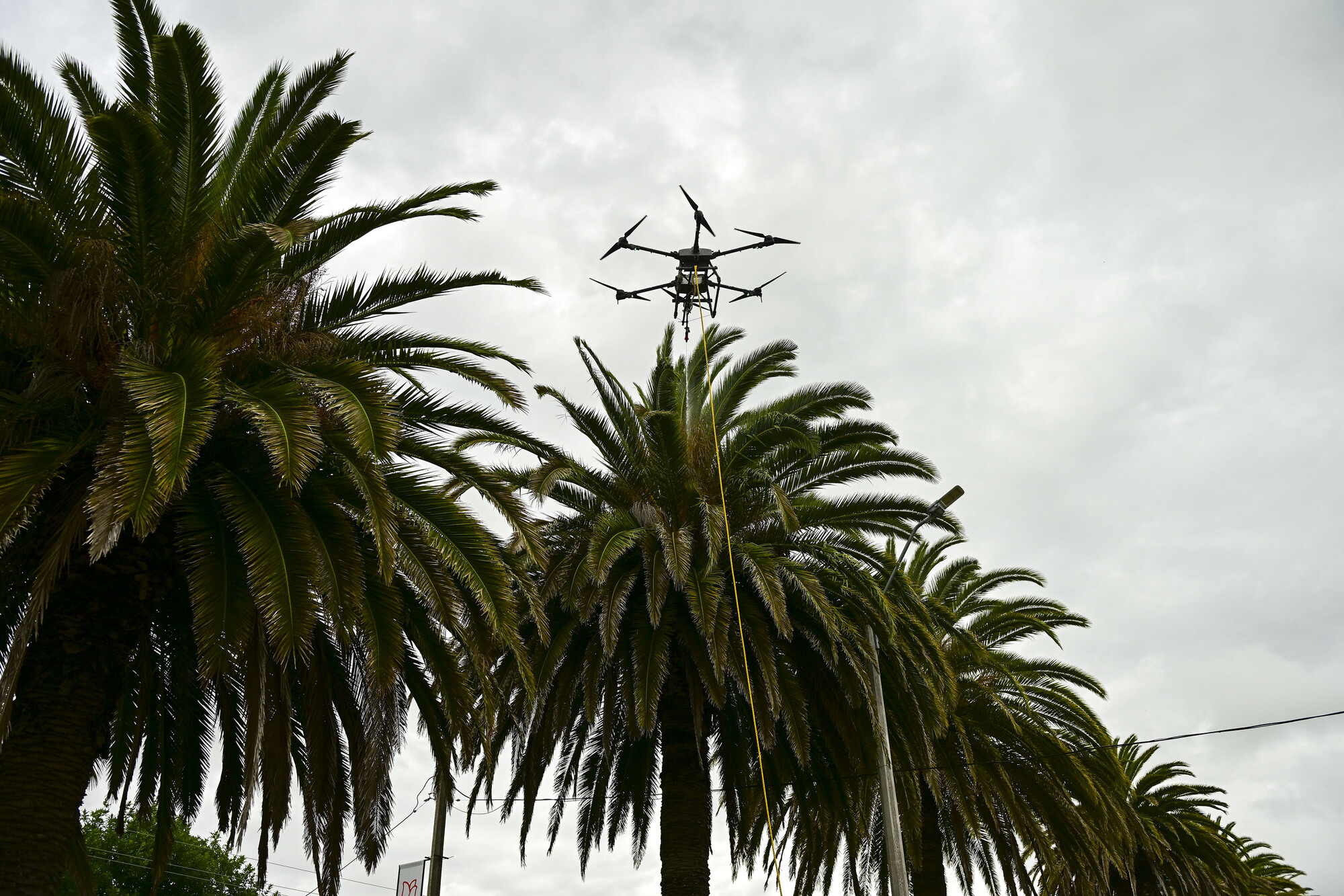 Aplicación del tratamiento contra el picudo rojo en palmeras de Rosario, en el departamento de Colonia, el 9 de diciembre.
