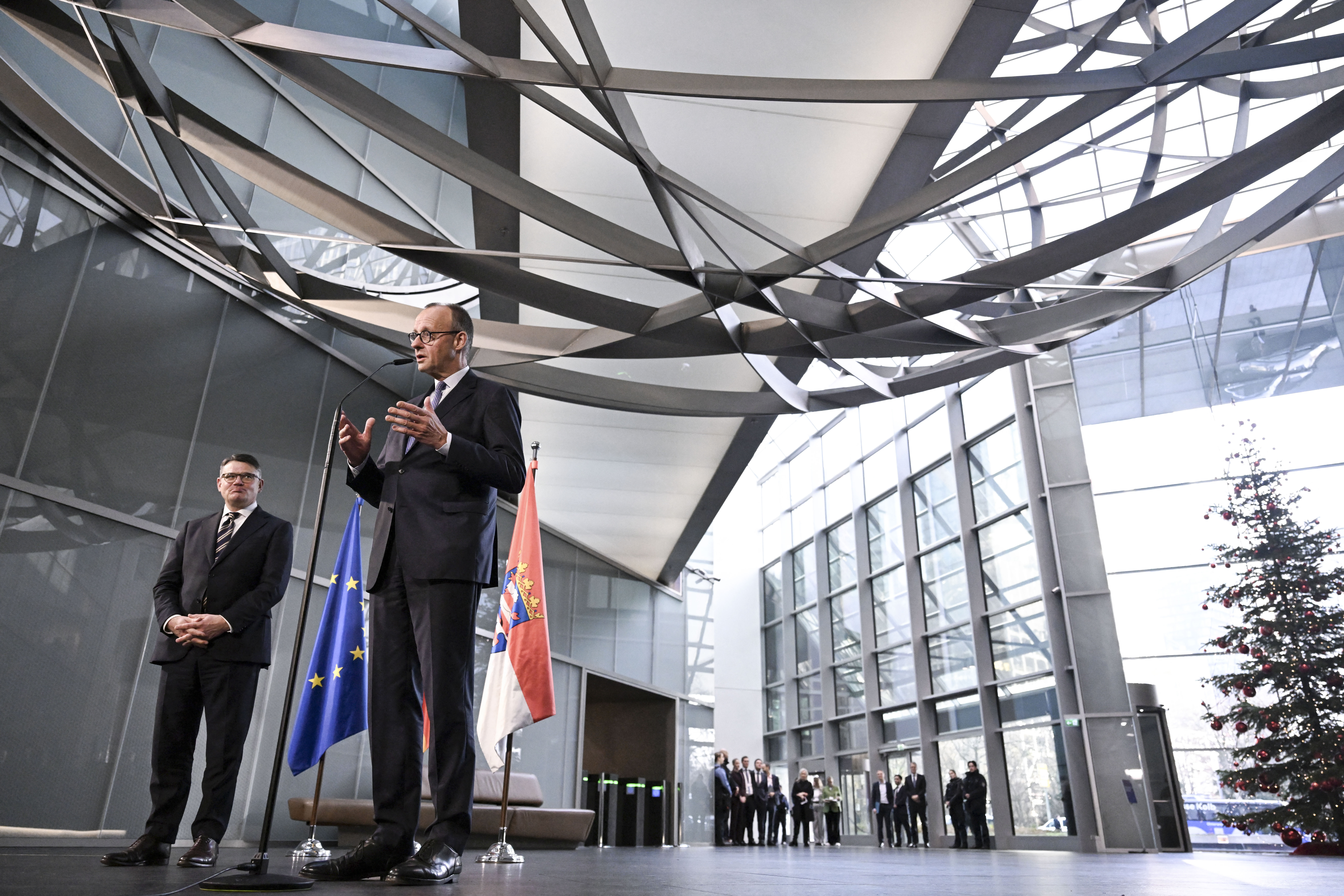 Friedrich Merz, el 16 de diciembre, en la sede del Deutsche Bank en Fráncfort del Meno, Alemania Occidental.