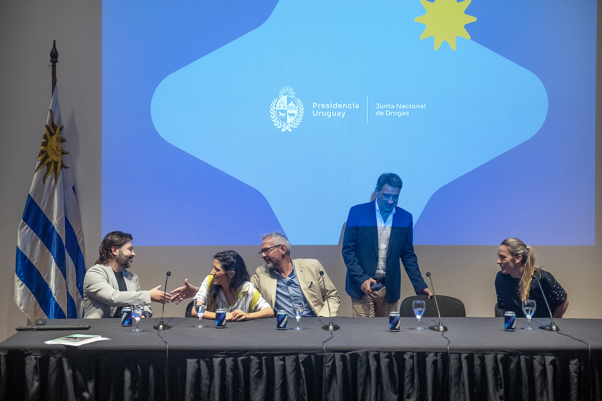 Jonathan Tejera, Lucía Antúnez, Leonel Briozzo, Juan Triaca y Melina Pan, el 18 de diciembre, en la Torre Ejecutiva.