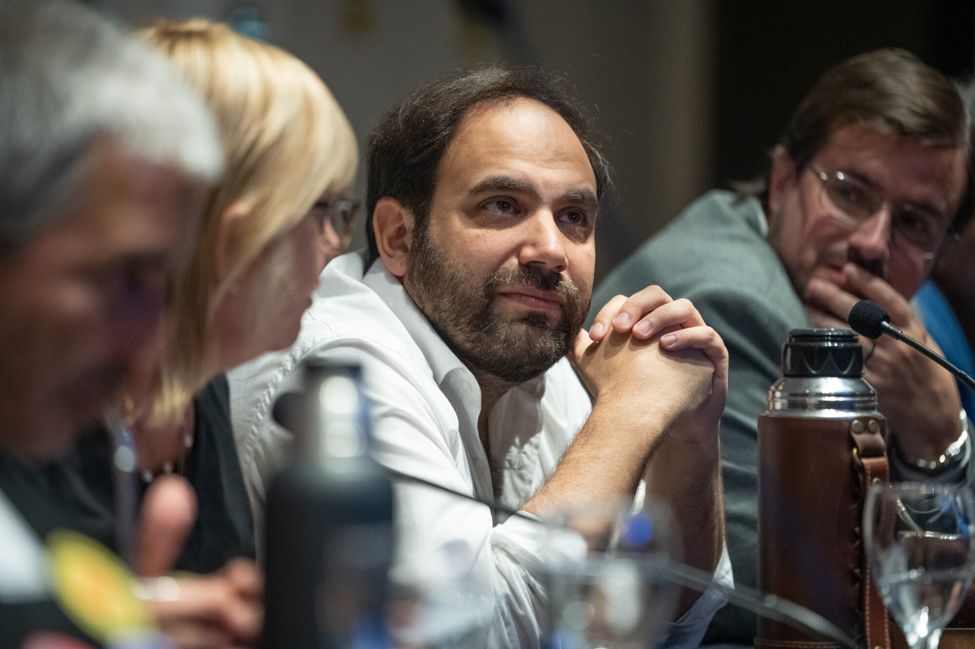 Gonzalo Civila (C), el 19 de diciembre, en la Torre Ejecutiva.