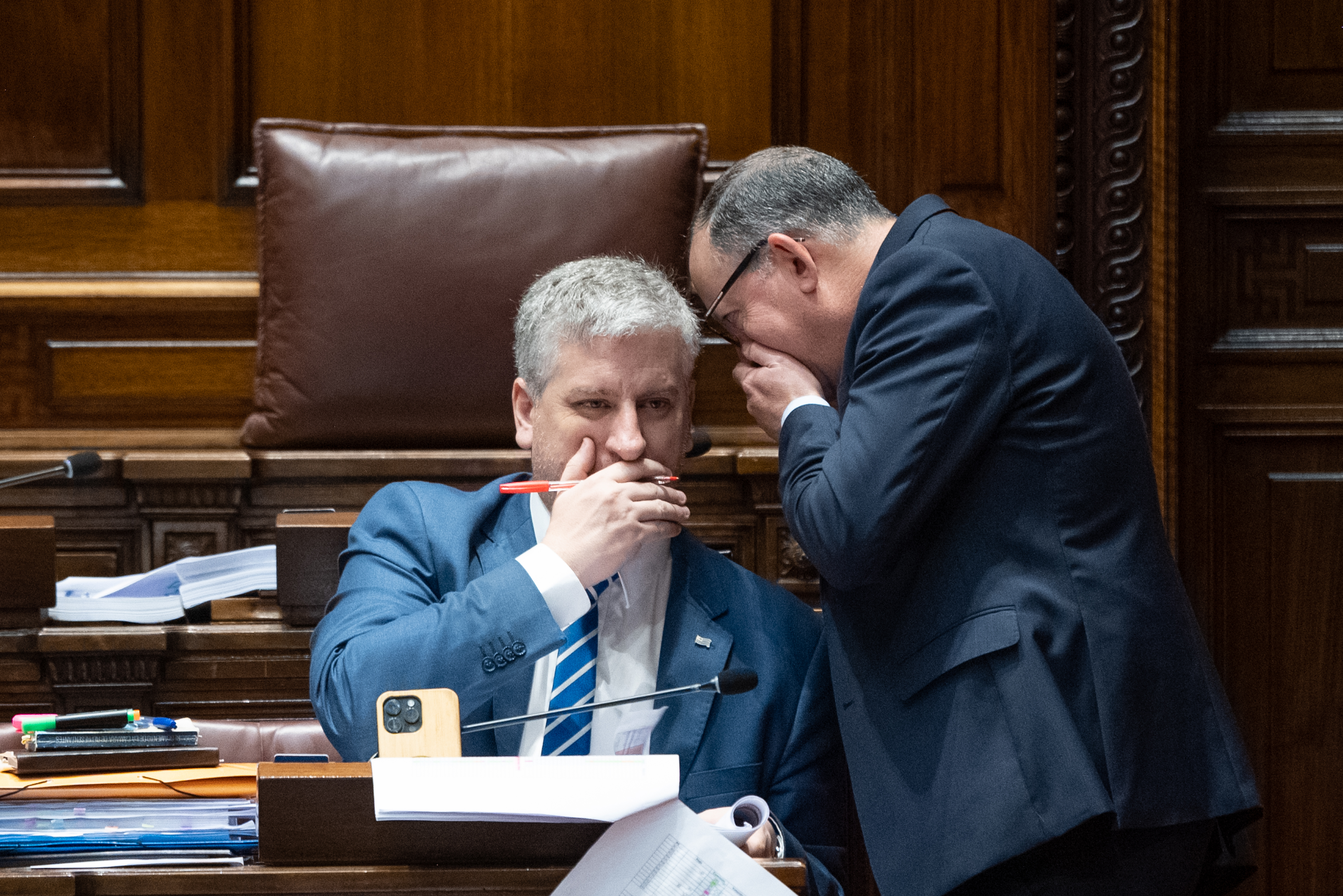 Juan Martín Rodríguez, del Partido Nacional y Álvaro Perrone de Cabildo Abierto, en la Cámara de Representantes (archivo, octubre de 2025).