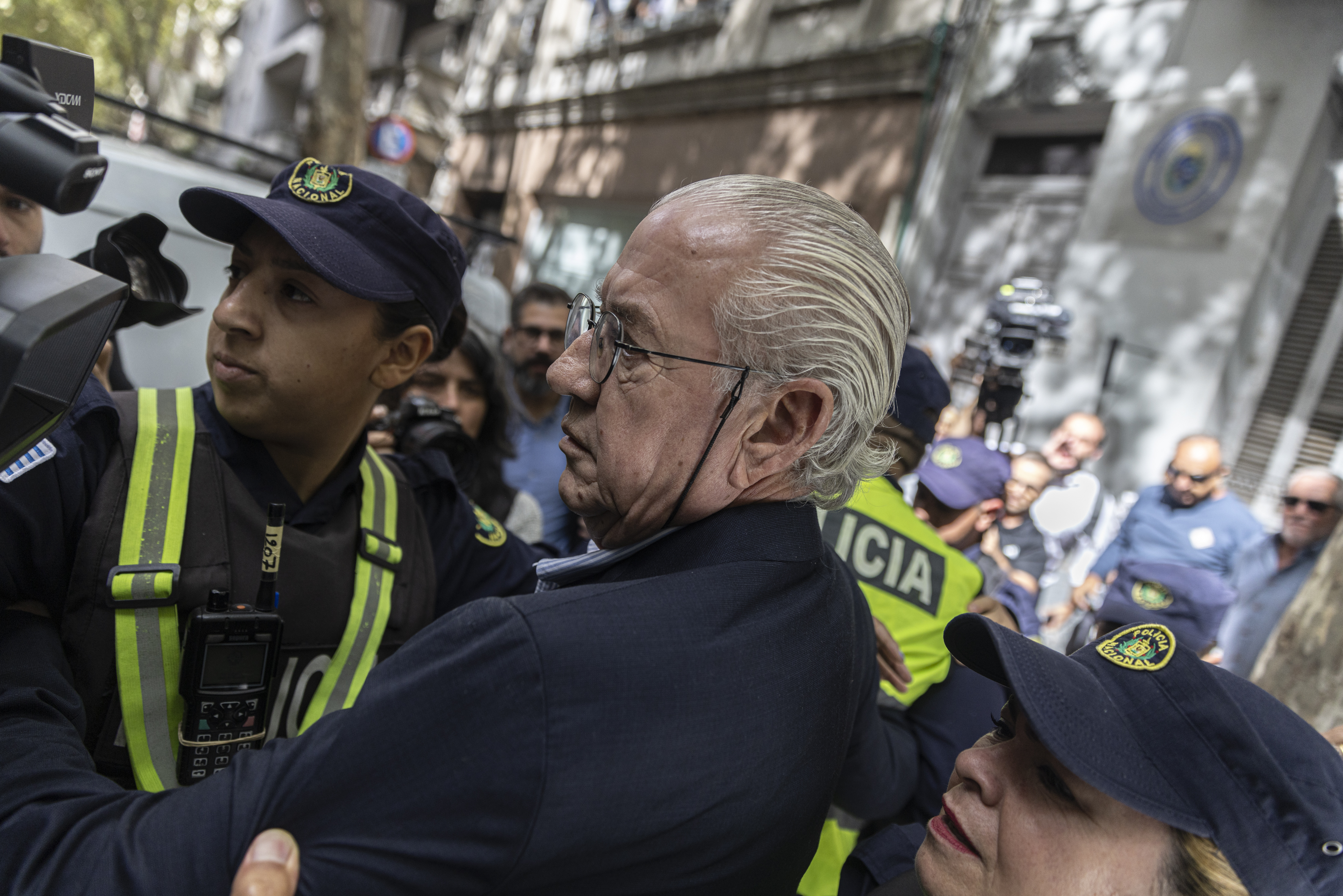 Pablo Carrasco a la salida de la audiencia de Conexión Ganadera, el 3 de abril, en el juzgado de Concurso de la calle San José.
