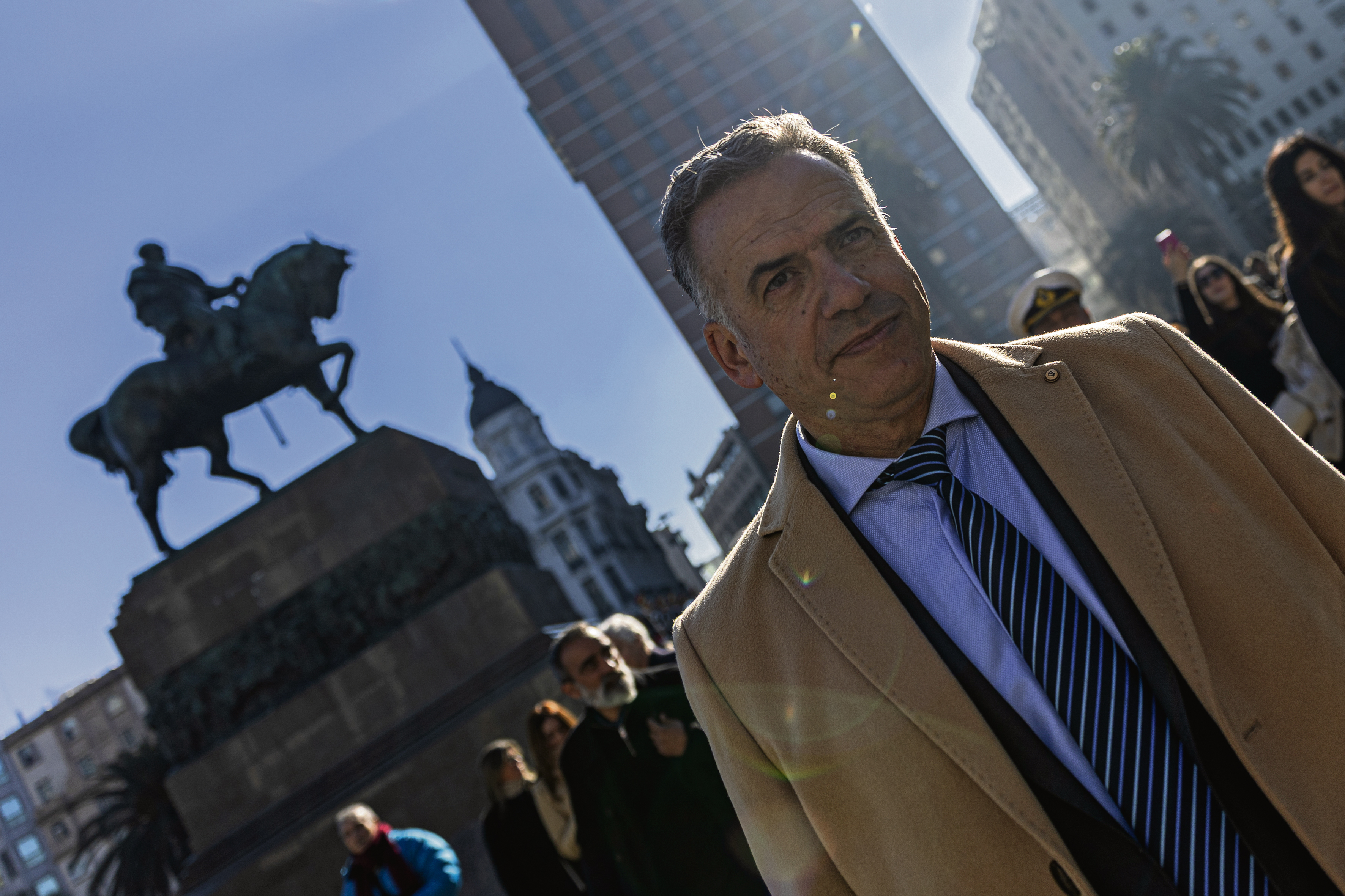 Yamandú Orsi, el 19 de junio, en la plaza Independencia.