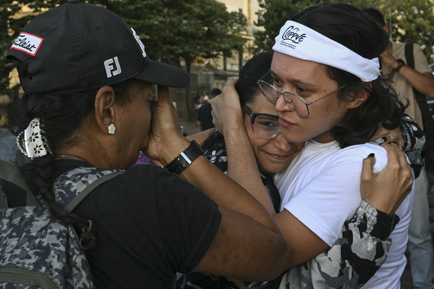 Miembros del Comité por la Libertad de los Presos Políticos en la entrada de El Helicoide, una prisión utilizada para presos comunes y políticos del Servicio Bolivariano de Inteligencia Nacional.