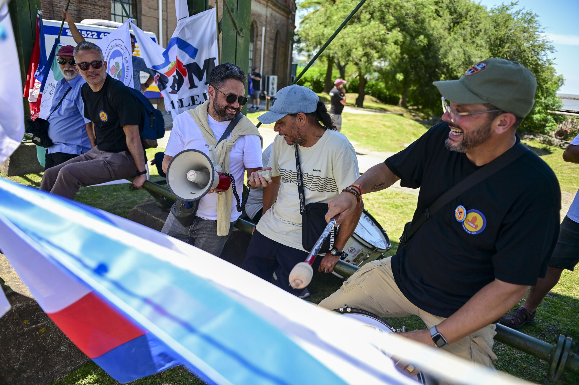 Movilización de Adeom en Colonia del Sacramento durante el Congreso de Intendentes (archivo, diciembre de 2025).