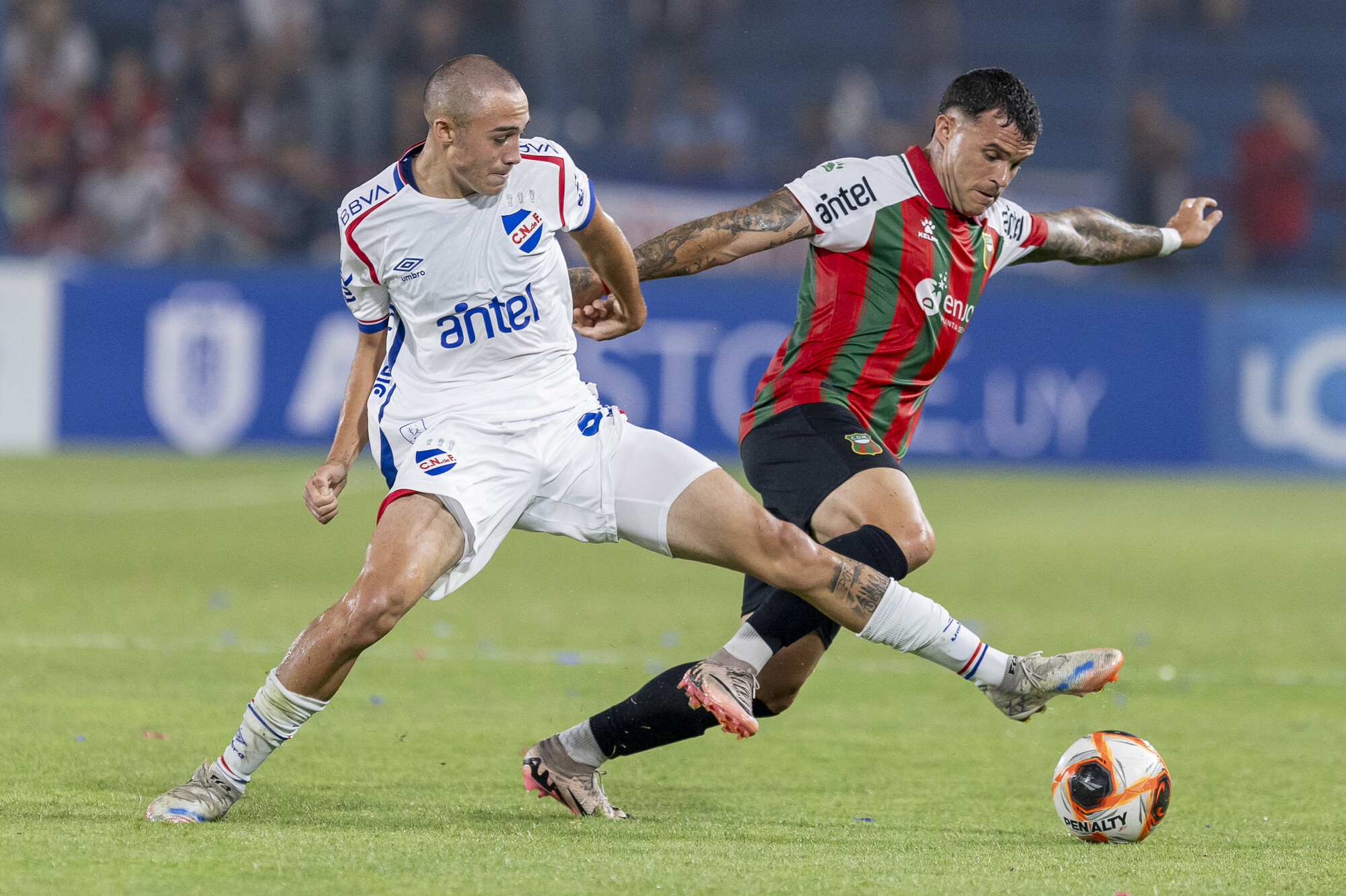 Román Clematte, de Nacional y Christian Tabó, de Deportivo Maldonado, el 13 de enero, por Copa de la Liga, en el Gran Parque Central.