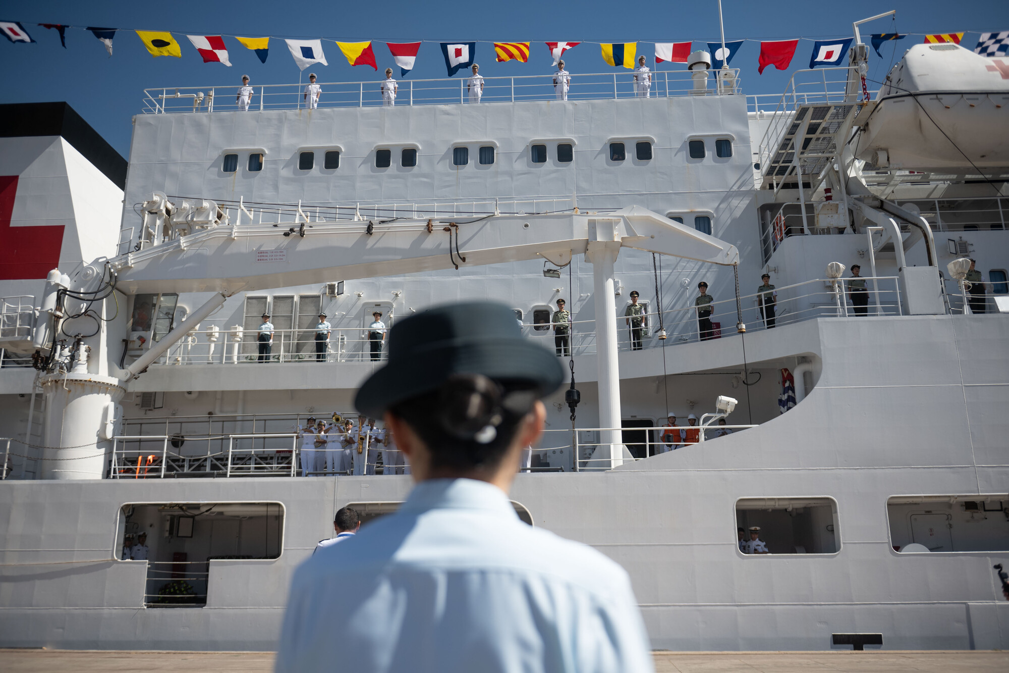 Buque hospital de la Armada china, el 20 de enero, en el puerto de Montevideo.