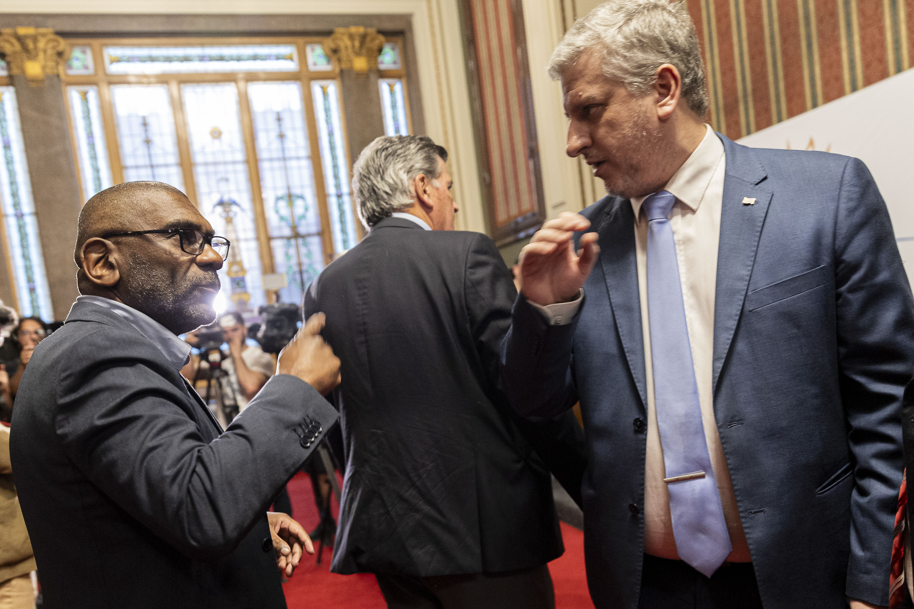 Edgardo Ortuño y Juan Martín Rodríguez, el 20 de enero, en el Parlamento.