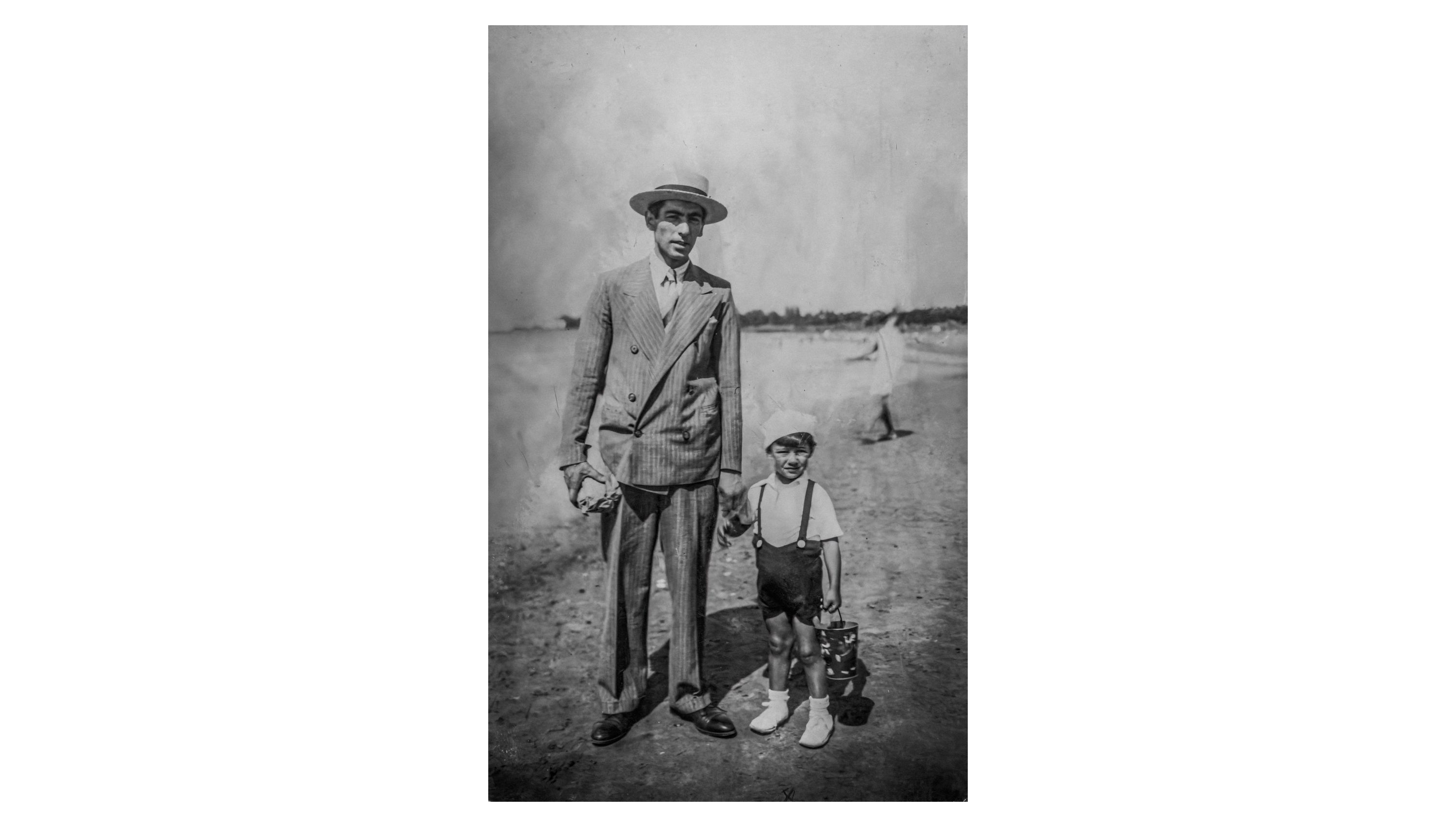 Patrocinio López posa junto a su hijo Orlando en la Playa Mansa de Punta Colorada, circa 1930.