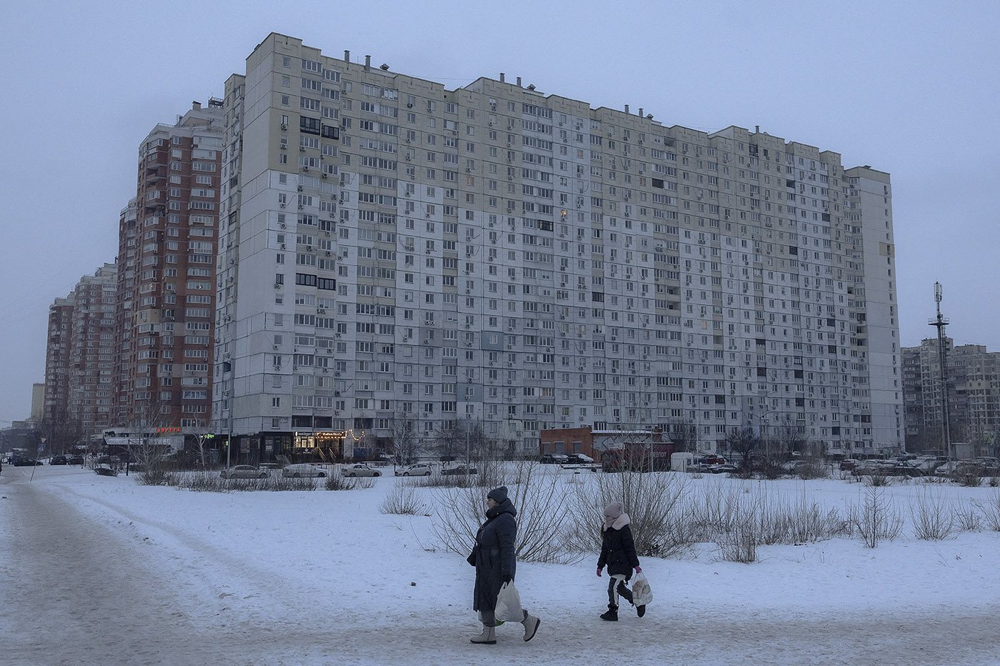 Barrio residencial en un día baja temperatura en Kiev.