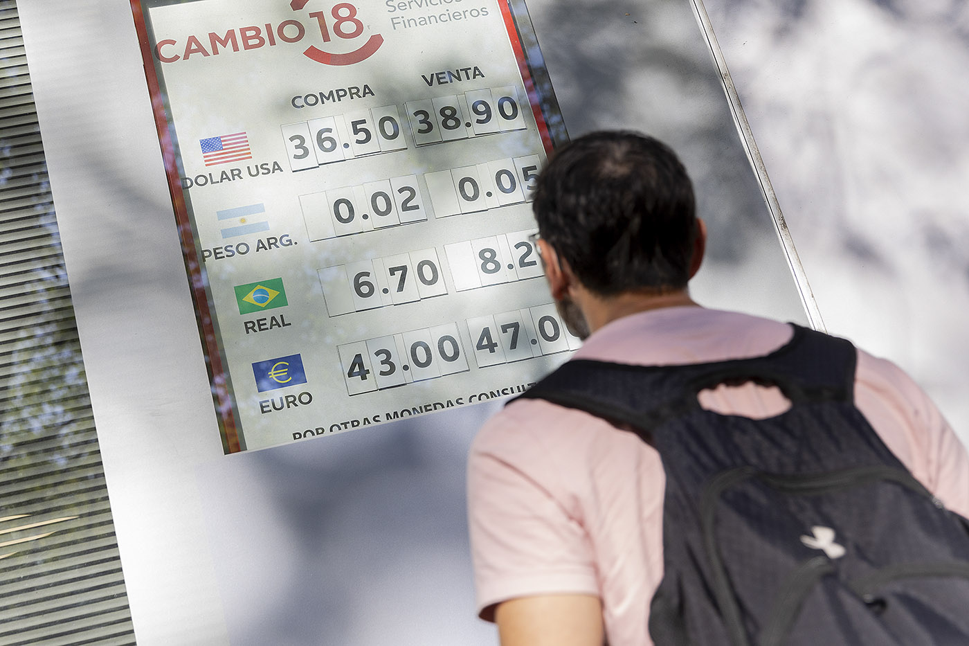 Pizarra de cotizaciones en el centro de Montevideo.