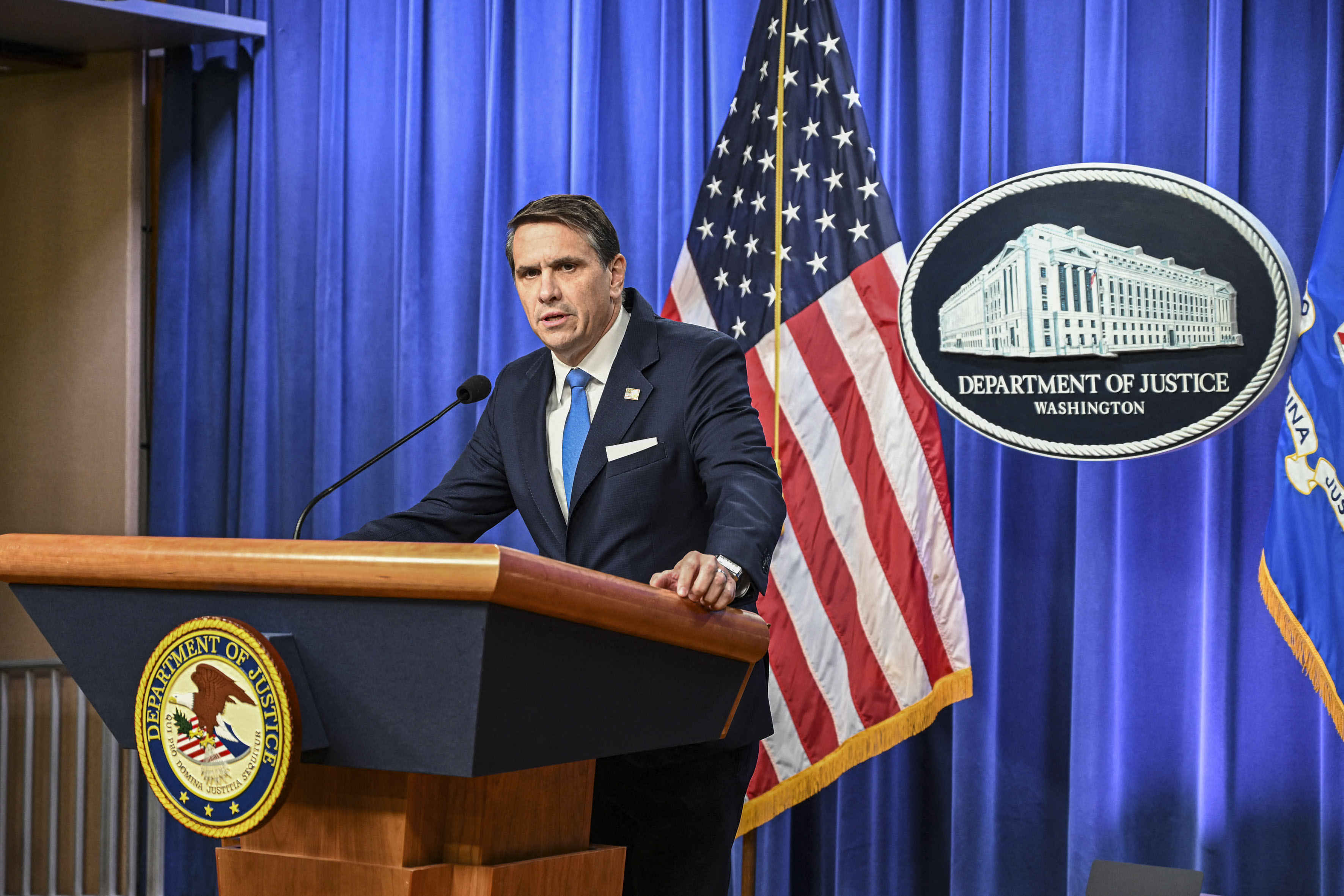 El fiscal general adjunto de Estados Unidos, Todd Blanche, durante una conferencia de prensa en el Departamento de Justicia, el 30 de enero, en Washington, DC.